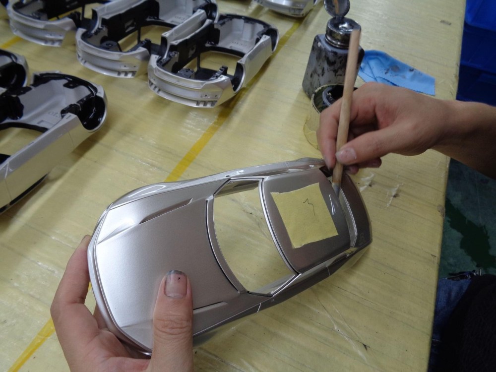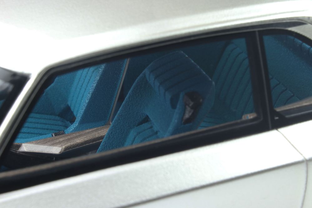 Le traité de la carrosserie est particulièrement bien réussi. Comme sur le modèle à l’échelle Un, les feux avant et arrière sont traités avec beaucoup de soin, ils sont comme des diamants ou des rubis posés subtilement sur la carrosserie.