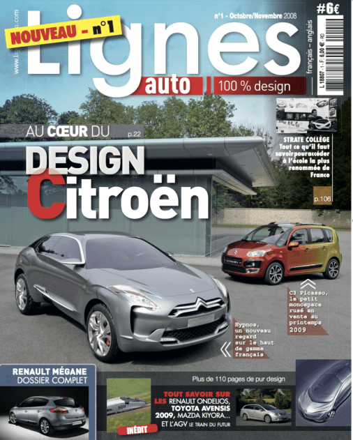 En 2008, Christophe lance avec Nicolas Langlois et Patrick Sautelet un superbe magazine entièrement consacré au design automobile dénommé Lignes auto. L’aventure s’est arrêtée après quelques numéros. Quel dommage ! Nous avions là une très belle revue avec un contenu passionnant et une mise en page bien plus agréable qu’Auto Design, la référence du domaine.