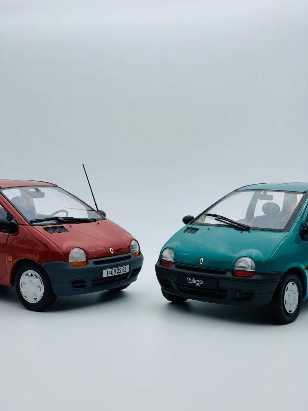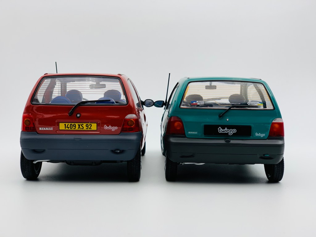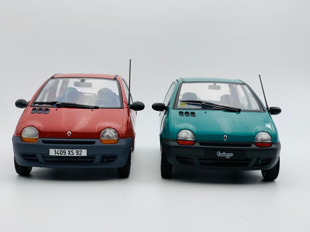Cette année 2020 a vu la commercialisation de deux Renault Twingo au 1/18ème. La première a été commercialisée par Norev. Véritable spécialiste de cette échelle, le fabricant lyonnais propose sa Twingo dans de nombreux coloris. Une version Police a rejoint récemment son catalogue tout comme la version restylée de la Twingo. De son côté, Solido a présenté en avril sa propre vision de la Twingo. Cette dernière n’est pour le moment disponible qu’en deux couleurs. Ce comparatif réunit une version rouge corail de Norev – une Exclu web éditée à 100 exemplaires seulement – ainsi qu’une version de couleur vert coriandre reproduite par Solido. L’une et l’autre correspondent au premier millésime de la Twingo.