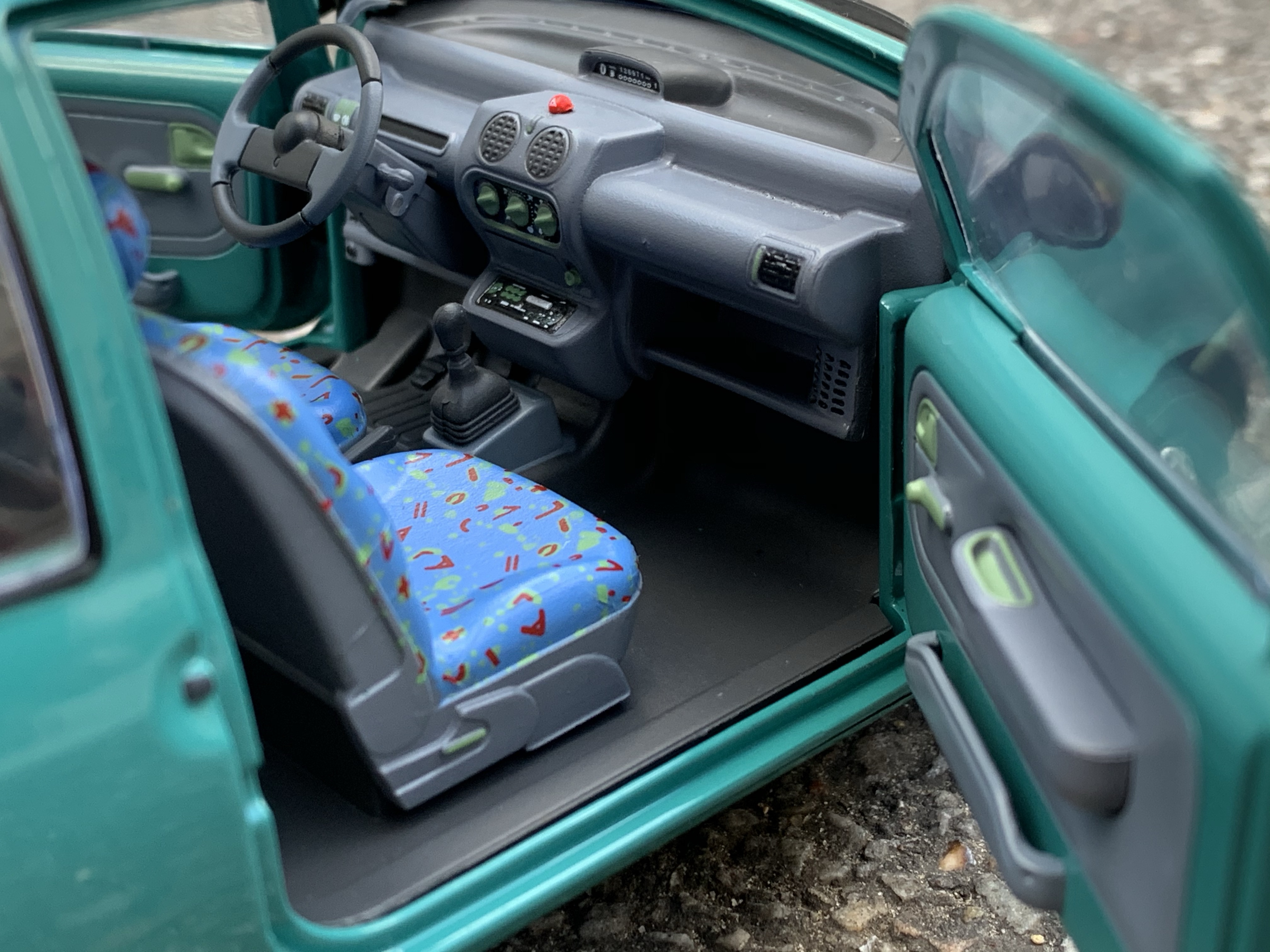 Il n’y a pas de débat ici, la Twingo de Norev ne bénéficiant pas d’ouvrants fonctionnels contrairement à celle de Solido qui bénéficie de portes ouvrantes. Ces dernières sont très bien réalisées. Elles tiennent correctement en place une fois fermées et ne souffrent d’aucun défaut d’alignement. Les contre-portes sont également très bien réalisées.