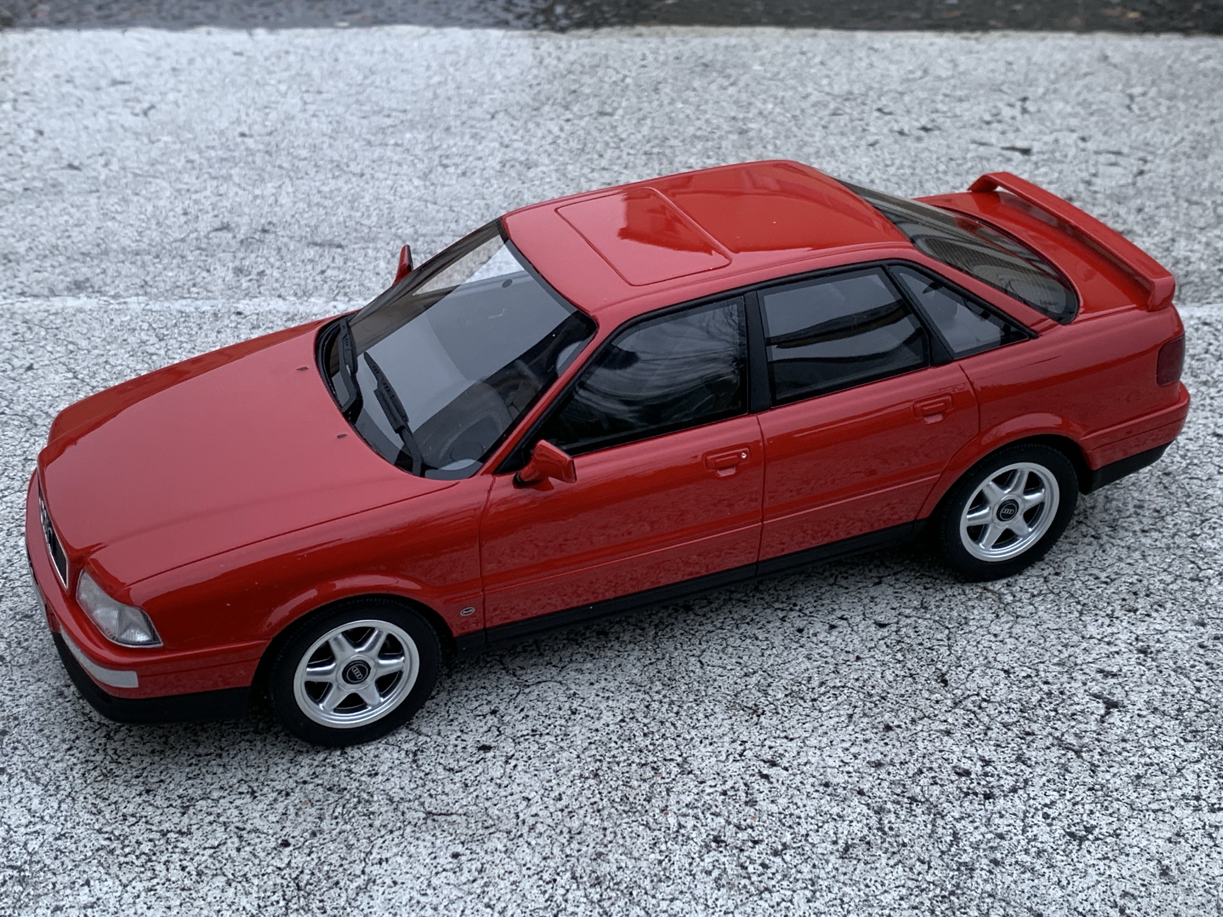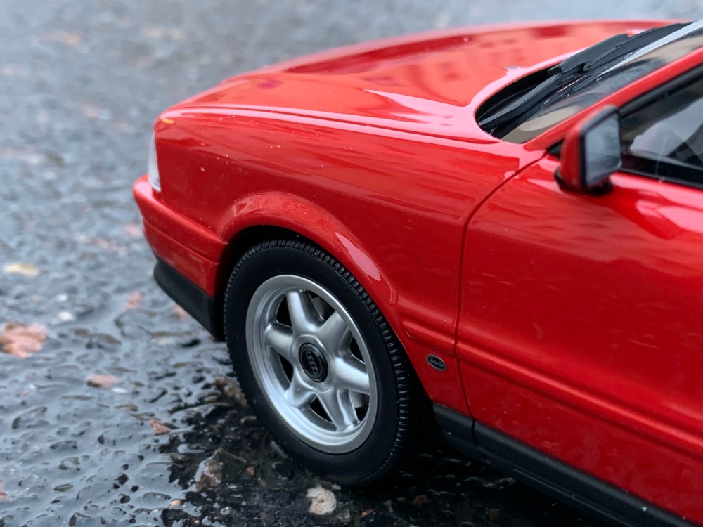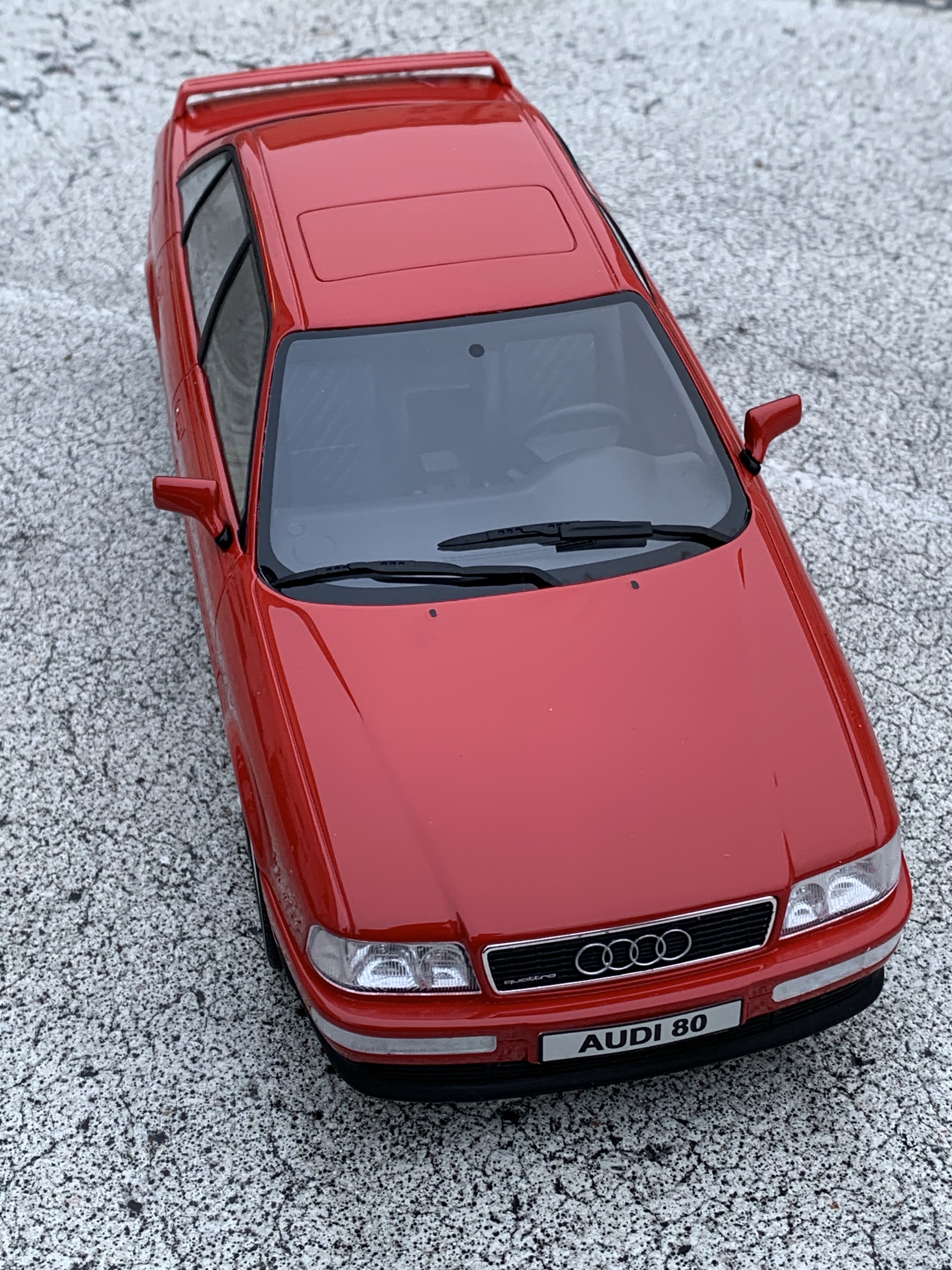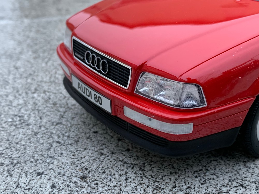 Elle était bigrement séduisante cette Audi 80 au début des années 90. Face aux Peugeot 405, Renault 21, Alfa Roméo 155, Opel Vectra et BMW Série 3, elle dégageait une classe folle et faisait rêver avec ses versions S2, RS2 et cabriolet. La miniature réalisée par OttOmobile réussit à procurer le même sentiment lorsqu’elle est placée à côté d’une 405 ou d’une R21 au 1/18ème. Les plus observateurs d’entre vous noteront qu’OttOmobile a fait le choix de reproduire une version équipée du toit ouvrant en tôle optionnel.