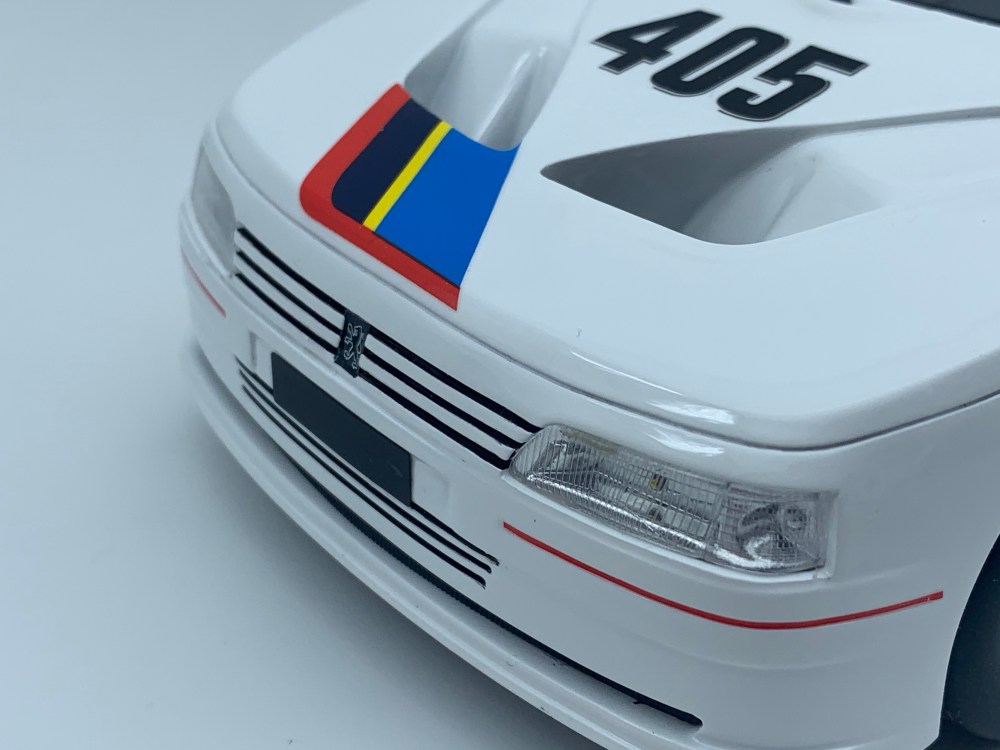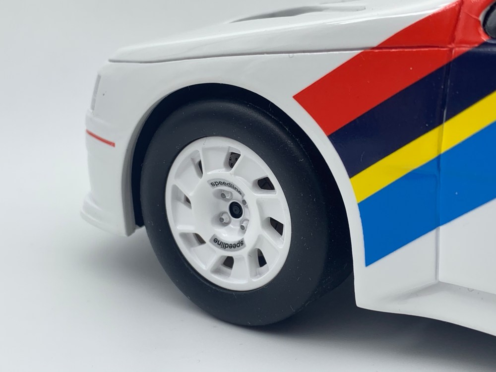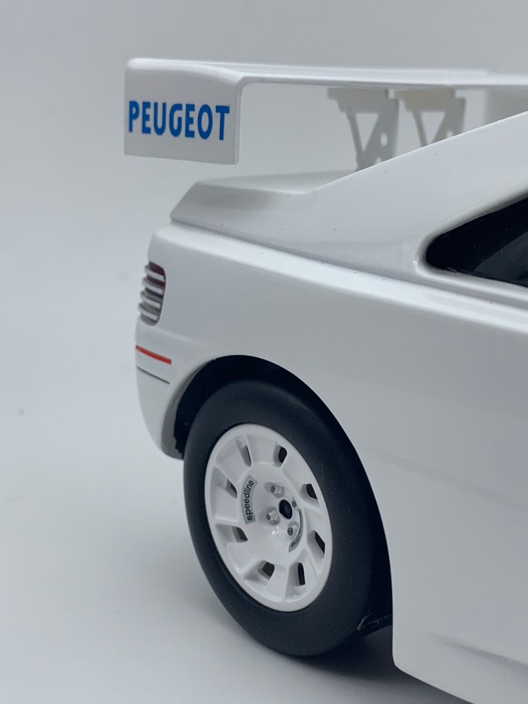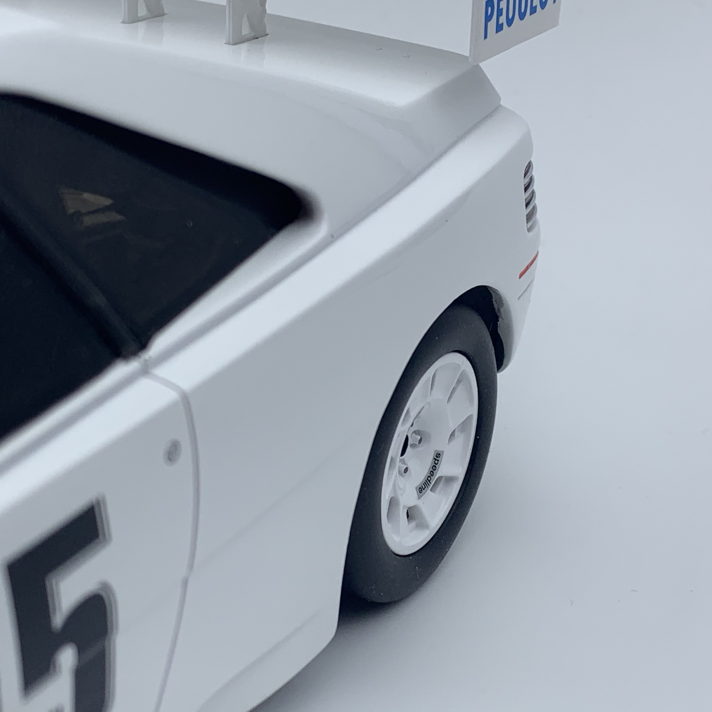 Nous retrouvons sur cette 405 les très belles jantes Speedline montées également sur les 405 Turbo 16 ayant couru à Pikes Peak. Uniformément blanches, ces dernières sont très bien reproduites et comportent en leur centre l’inscription Speedline.