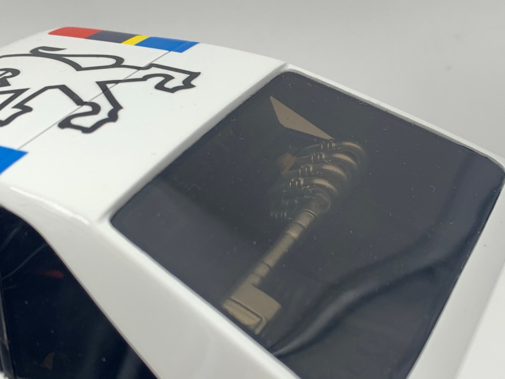Réalisée en résine, cette miniature ne peut pas être équipée d’ouvrants, ce matériau ne le permettant pas. Une fois n’est pas coutume, ce détail est parfaitement conforme à la voiture présentée par Peugeot en 1987 qui n’était qu’une simple maquette !