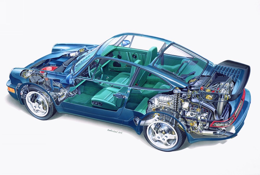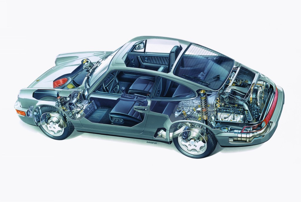 La 911 Turbo étant incontournable dans la gamme, il faut trouver une solution en catastrophe. Les ingénieurs décident alors de recycler le moteur 3.3l de la 930.