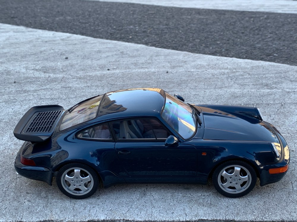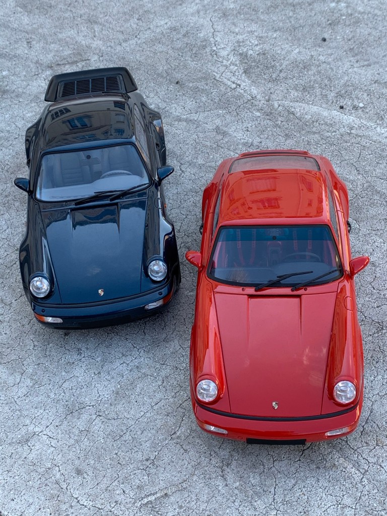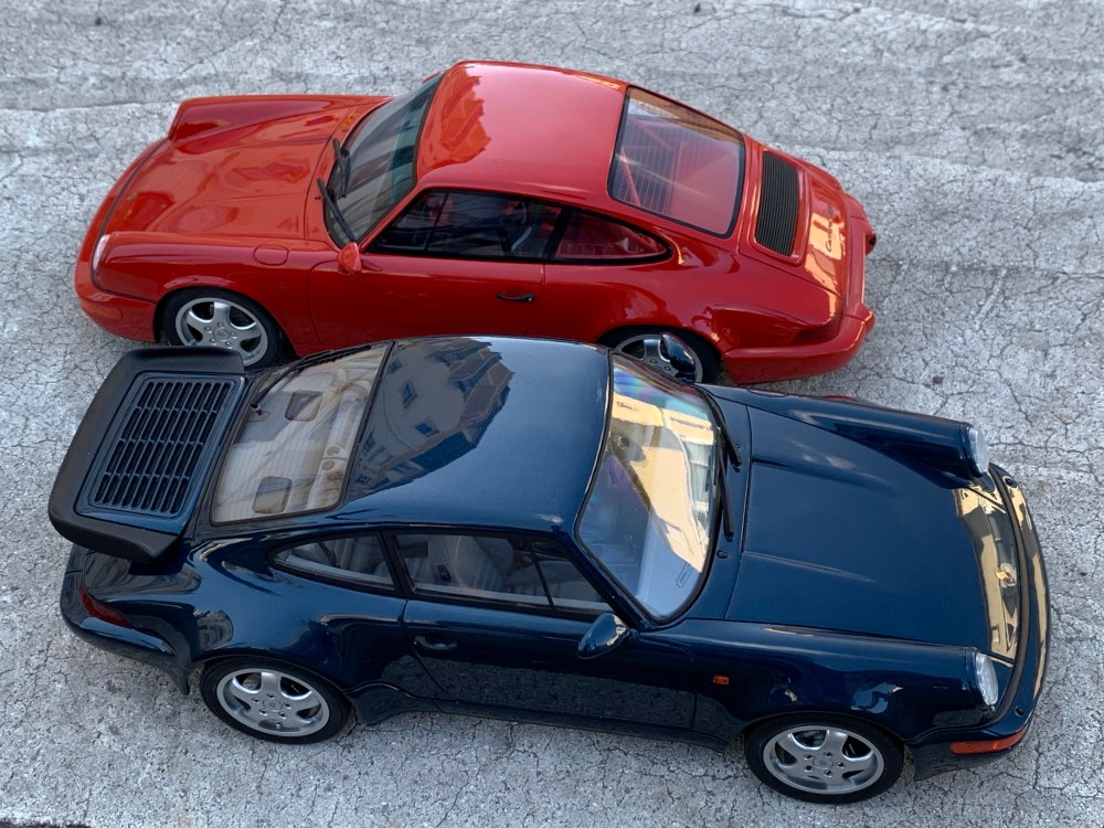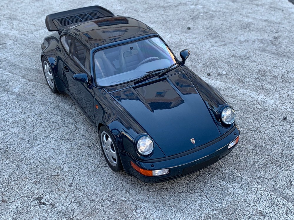 Pourtant malgré ses nombreuses qualités, la 964 Turbo 3.3l est rapidement éclipsée par la version 3.6l présentée deux ans plus tard. Il en est de même en miniature et jusqu’à ce jour, en dehors de Minichamps et de Welly, cette 911 n’avait pas été reproduite à l’échelle du 1/18ème. Après avoir reproduit la 964 Turbo 3.6l au 1/18ème et au 1/12ème, GT Spirit s’attaque maintenant – et de fort belle façon – à la 3.3l.
