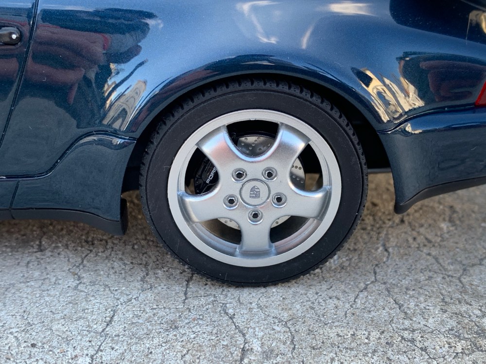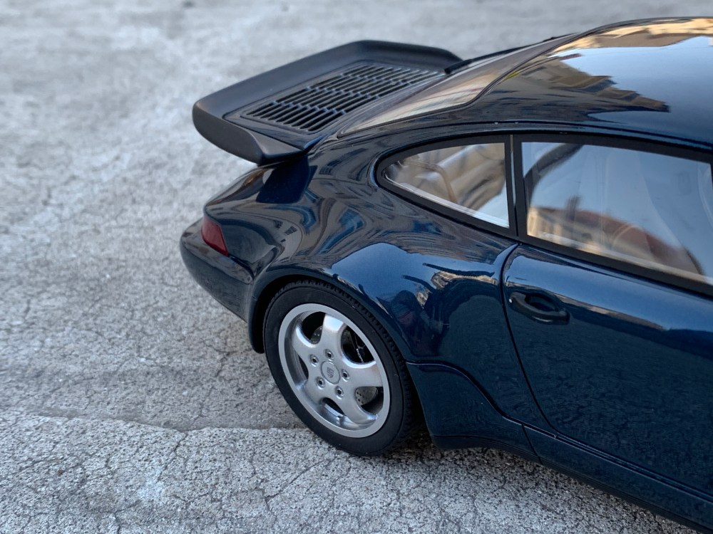 La 964 Turbo 3.3l a inauguré les superbes jantes à 5 branches issues de la Carrera Cup. Ces jantes sont associées à la 964 et leur dessin est superbe. GT Spirit les a parfaitement reproduites. Une touche de couleur noire a même été apposée sur les cinq tocs.