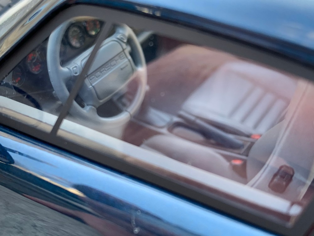 A noter que cette 911 Turbo dispose de canules d’échappement chromées, une finition qui n’était pas présente sur la version à l’échelle Un. L’aileron arrière – l’une des pièces les plus emblématiques de la carrosserie de la Turbo avec les ailes élargies – est quant à lui bien réalisé.