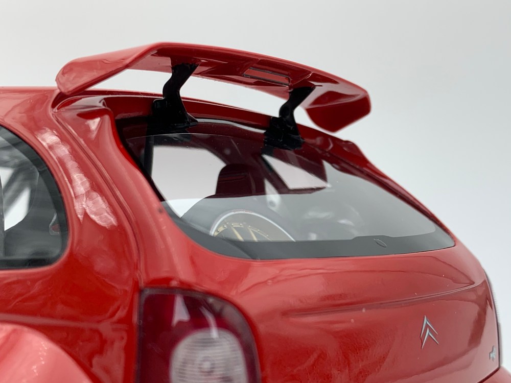 Tout comme la version originale, la miniature réalisée par OttOmobile est impressionnante ! Eblouissante dans sa teinte rouge Citroën Racing, elle semble posée par terre et prête à rugir sur un circuit. Nous retrouvons bien entendu la silhouette typique du Xsara Picasso au niveau de la courbure du toit, des vitrages et des optiques. Pour le reste, nous sommes tout simplement en présence d’une très jolie et atypique voiture de course.