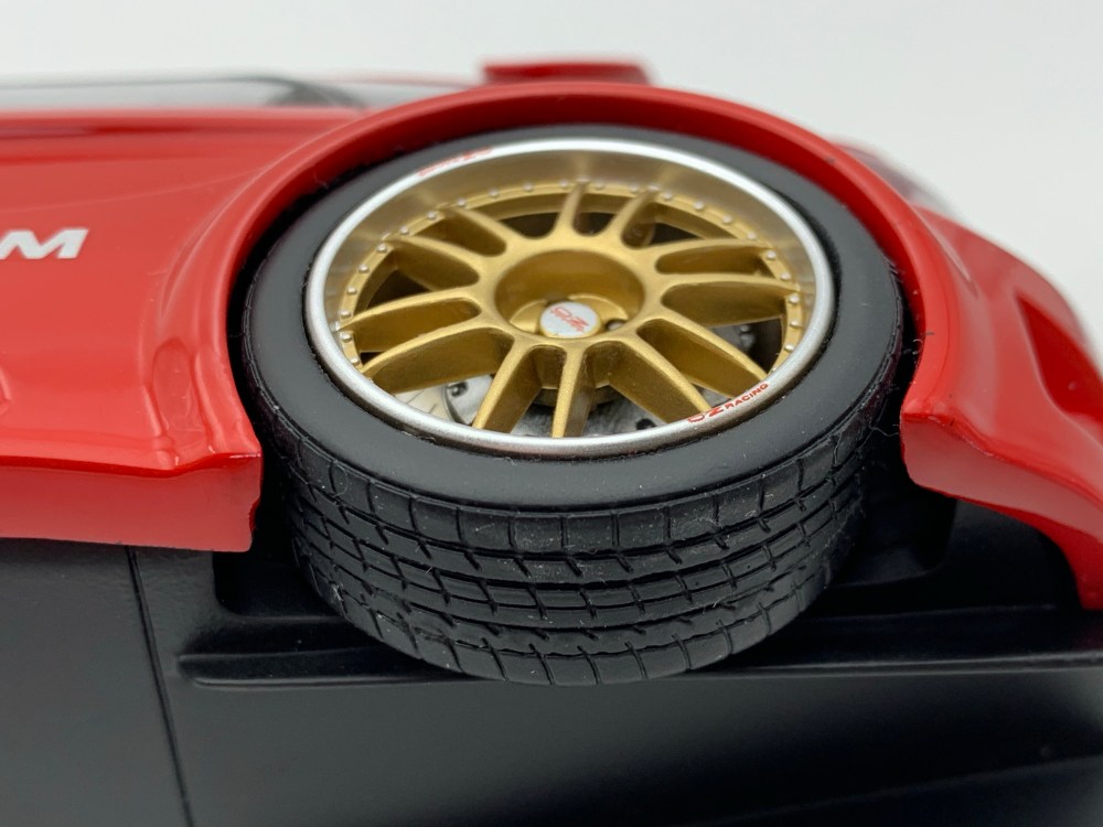 OttOmobile a réalisé une magnifique reproduction des jantes OZ Superleggera de couleur or montées sur le Picasso Cup. Ces dernières abritent de grands disques de freins issus – à l’échelle Un – de la Xsara Kit Car (lire aussi l’article que lov4wheels avait consacré à cette voiture).