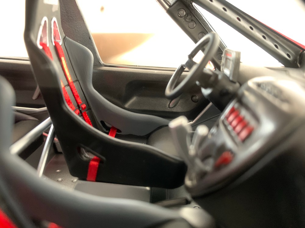 Autre pièce de choix, l’arceau cage réalisé sur mesure par les élèves de l’école ESPERA Sbarro qui, là aussi, est très bien réalisé. Enfin, les quatre sièges baquets provenant de chez Cesam sont eux aussi superbes et donnent envie de prendre place dans ce Picasso Cup ! Les plus observateurs d’entre vous noteront qu’OttOmobile n’a pas oublié d’intégrer les harnais sur chaque siège.