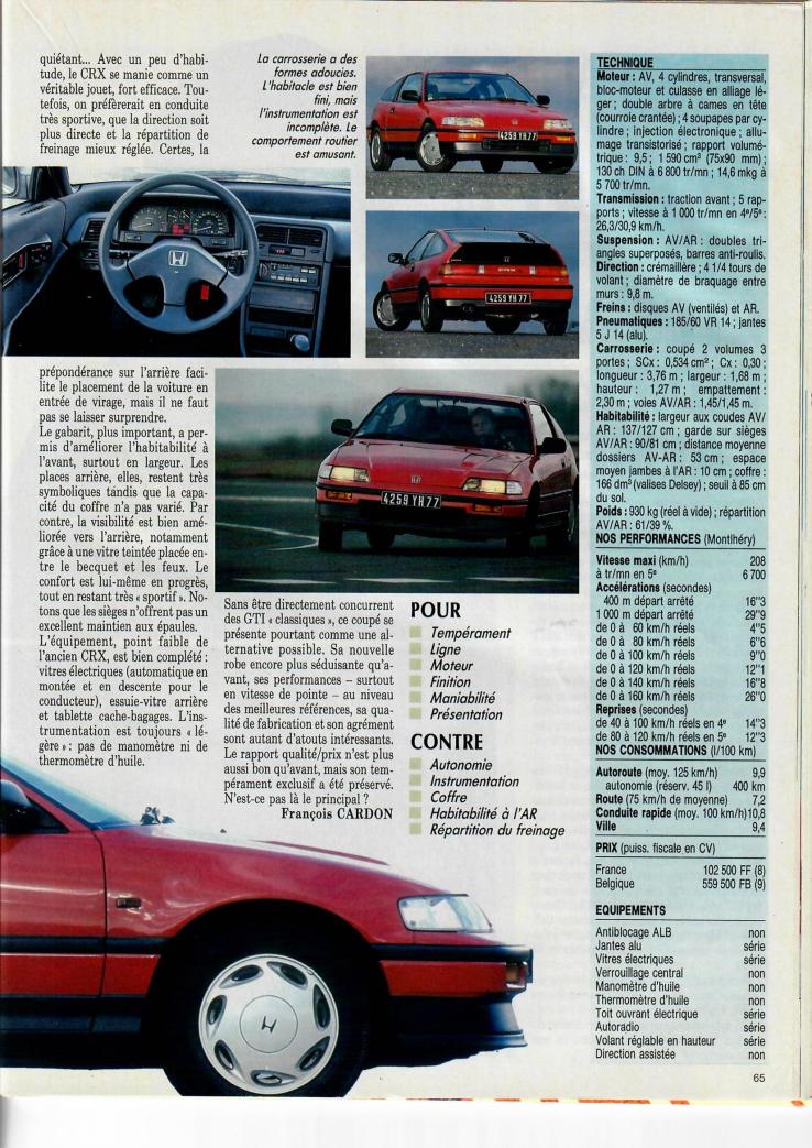 L’Action Automobile publie en mars 1988 l’essai complet de la CRX. Sous la plume de François Cardon, le lecteur découvre « un challenger de talent ».