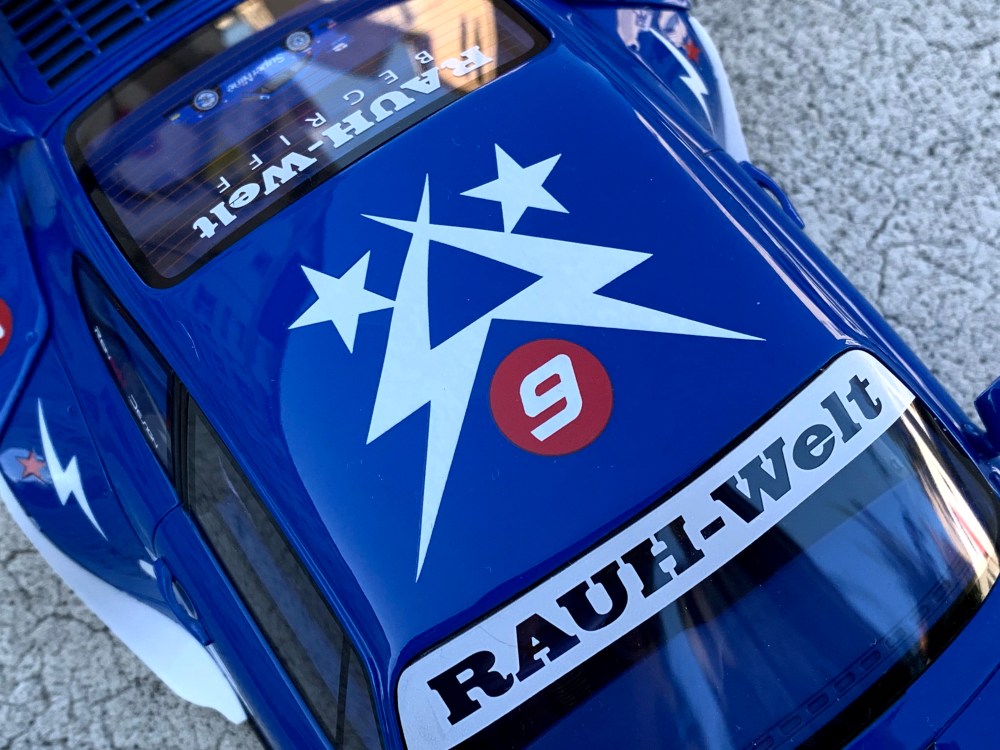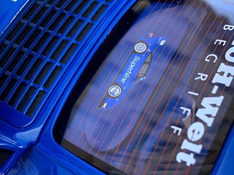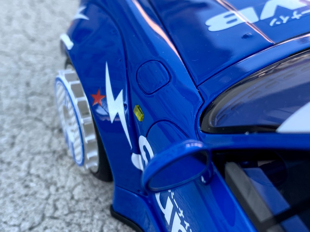 GT Spirit a réalisé un superbe travail. La peinture est profonde et lumineuse et surtout, la décoration est parfaitement réalisée. Regardez bien, il n’y a pas une partie de la voiture qui n’ait pas été recouverte d’un motif ou d’une inscription.