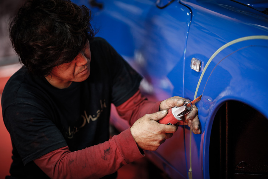 Un bourreau de travail lors de ses constructions. Dans sa bulle, silencieux, concentré Nakai-San façonne les RWB avec une grande implication. Il ne s’arrête que ponctuellement le temps d’une cigarette. Pour lui le toucher est très important, même s’il travaille à l’œil, il n’a de cesse de vérifier à la main. Chaque détail est abordé avec le plus grand soin pour que tout soit absolument parfait !