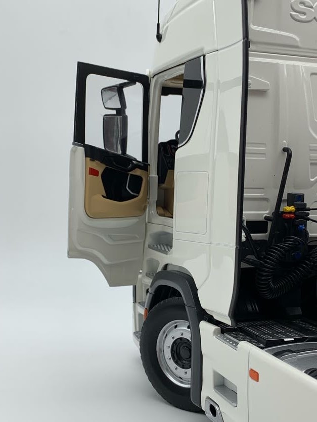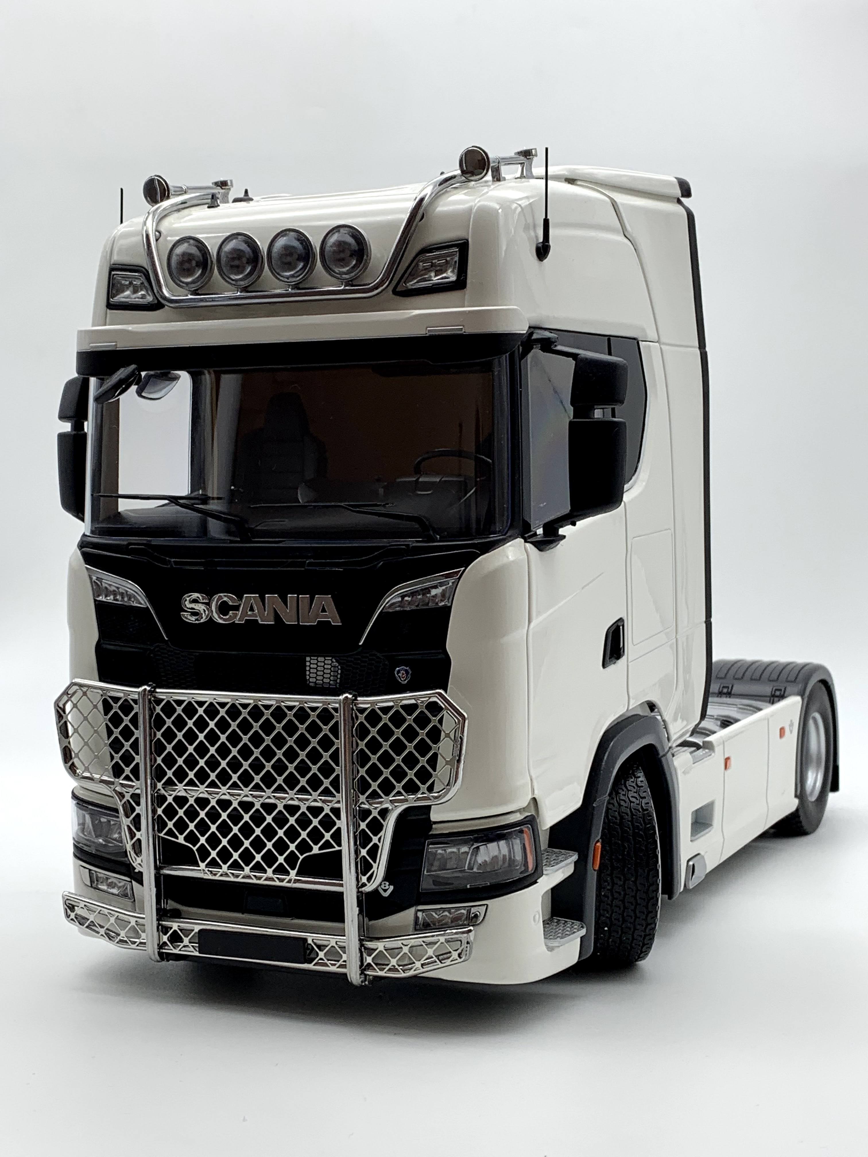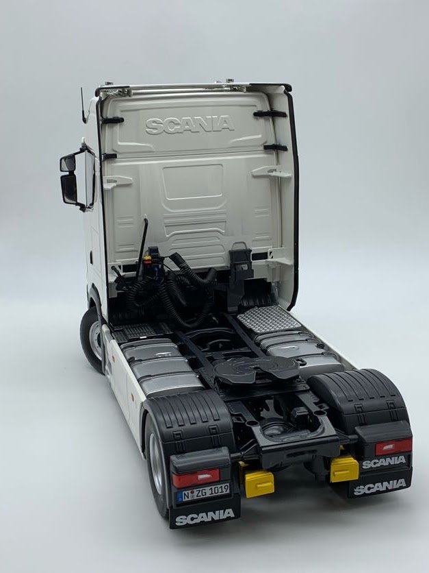 Lorsque NZG a décidé de reproduire un Scania au 1/18ème, son choix s’est naturellement porté vers la dernière génération dans sa finition la plus élevée : le 730S équipé de son V8 de 730 chevaux accompagné de sa cabine la plus spacieuse dénommée Highline.