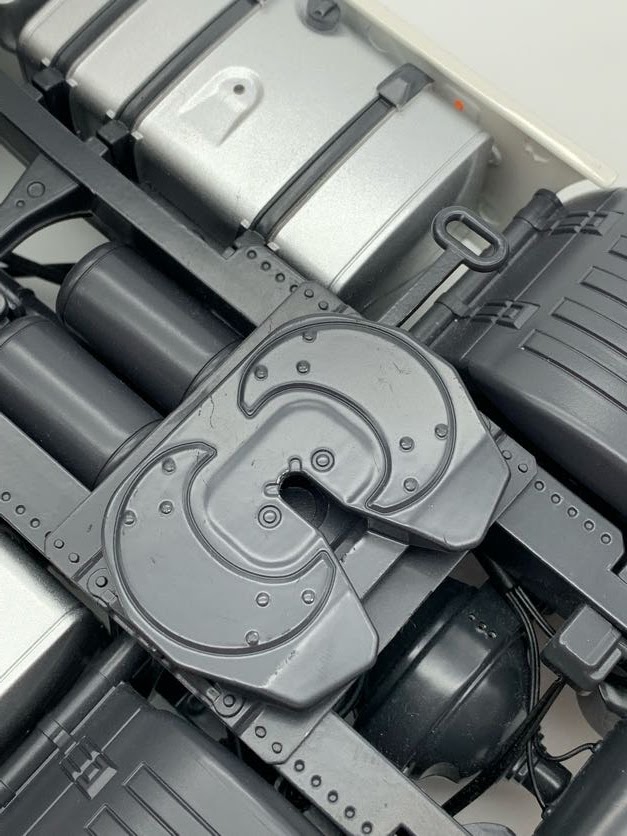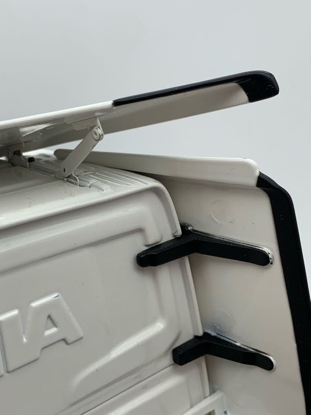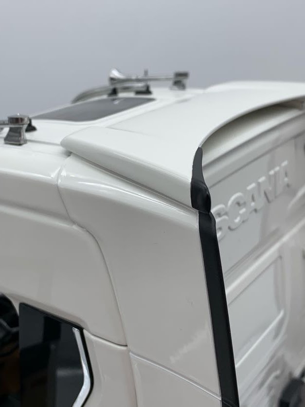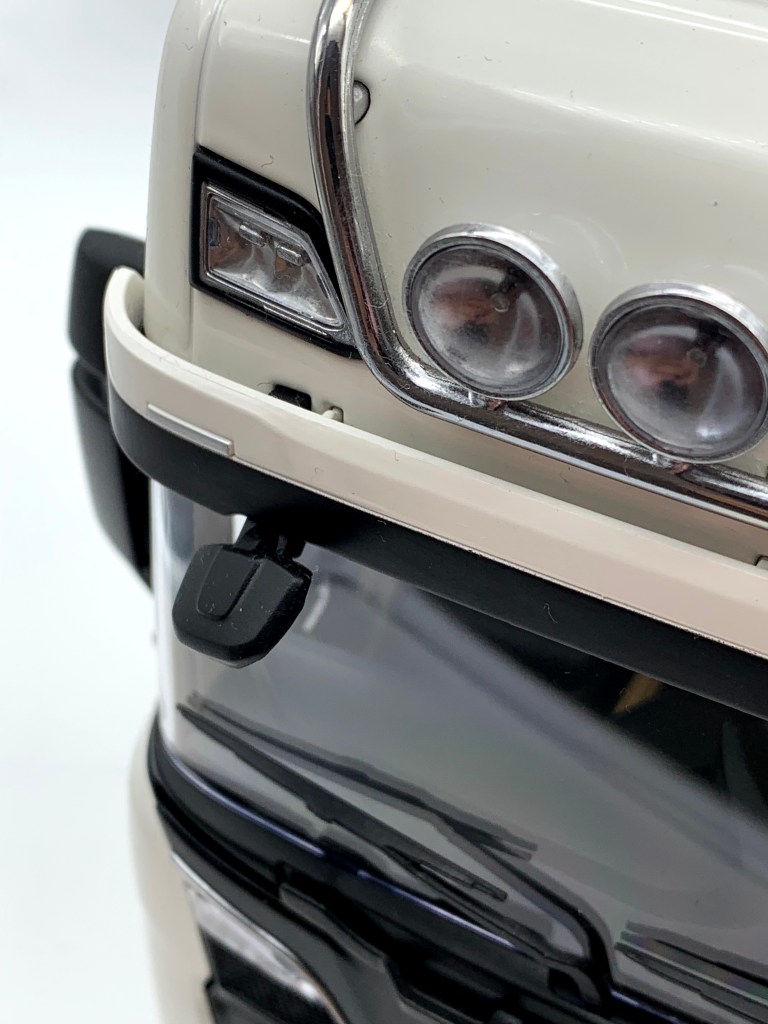 En partie haute, nous retrouvons les lettres Scania inscrites en relief, comme sur le modèle à l’échelle Un.