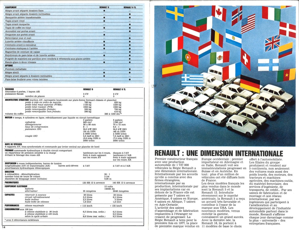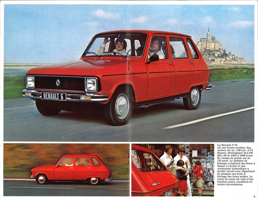 En 1976, l’Auto-Journal réalise un grand comparatif opposant la Renault 6 TL à ses rivales. Ce dernier s’avère sans appel pour la petite Renault : « depuis sa naissance, la Renault 6 est en porte-à-faux et elle est certainement le modèle de ce constructeur qui a été le plus mal accueilli par les spécialistes. Sa carrosserie disgracieuse est responsable en premier chef de cet état de fait bien que la deuxième version soit en net progrès à cet égard. Depuis longtemps on prédit la fin de sa carrière mais elle est toujours là, solide au poste, et s’exporte bien sur certains marchés. […] En fait, la 6 n’est qu’une 4 un peu étoffée, utilisant même une plate-forme similaire et une suspension identique. Sur la version TL qui nous occupe aujourd’hui, le moteur est un 1108 cm3 développant 47 chevaux DIN. […] En s’installant au volant de la 6 TL, on est d’abord surpris par la mauvaise accessibilité due à l’étroitesse des portières avant. Puis la position très verticale du volant étonne un peu. […] Sans doute par hasard, la voiture dont nous dispositions pour notre essai s’est révélée très supérieure sur le plan des performances à celles essayées précédemment. Le moteur tournait parfaitement rond, prenait du régime à plaisir et les performances nous ont agréablement surpris. […] Sur toutes les routes empruntées, la 6 TL s’est bien comportée et même sur autoroute elle fait encore bonne figure. Sa tenue de route, elle aussi, inspire confiance dès que l’on s’est habitué aux fortes inclinaisons de la caisse en virage. […] Même si elle ne disparaît pas dans les mois qui viennent, la Renault 6 arrive en fin de course après une carrière honnête mais jamais très brillante. Elle va devoir subir les assauts de la Renault 14 et aura bien du mal à s’en relever. Pour le même prix, on peut avoir une Peugeot 104 ou une Simca 1100. Ce seul rapprochement nous dispense de commentaires assez… désobligeants ».