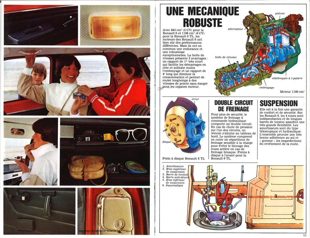 Cette version 1100 est essayée dans le n°121 de l’Action Automobile publié en octobre 1970. Alain Bertaut, l’essayeur vedette du magazine, nous dit qu’avec ce nouveau moteur, « la Renault 6 prend une personnalité différente, tant il est vrai que la puissance est toujours un avantage appréciable. La vitesse de croisière se trouve augmentée facilement de 20 km/h et l’agrément de conduite est considérablement amélioré du fait que l’on se trouve dans l’obligation de solliciter beaucoup moins la boîte de vitesses pour obtenir un bon rendement. La conduite n’a pas changé et il est intéressant de constater que la vitesse plus élevée est parfaitement tolérée par la voiture. […] Il ne s’agit plus d’une petite voiture économique mais d’une voiture moyenne économique, offrant des performances satisfaisantes et un usage aussi pratique ».