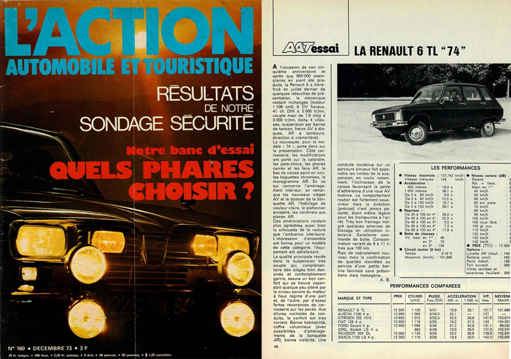 La Renault 6 nouvelle version est essayée par Alain Bertaut dans l’Action Automobile n°160 du mois de décembre 1973. Sa conclusion est assez cinglante pour la R6 : « Rien de radicalement nouveau mais la confirmation de qualités discrètes au service d’une petite berline familiale sans prétentions mais homogène ».