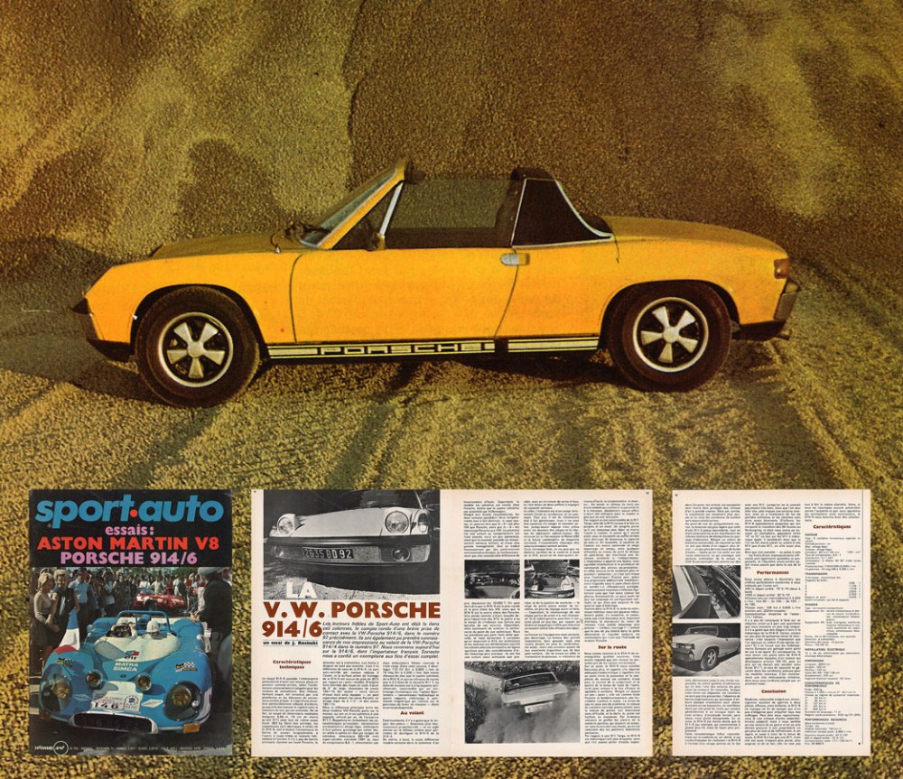 Dans le numéro 106 de Sport Auto publié en novembre 1970, José Rosinski écrit : « on pourrait dire que la 4 est plus VW que Porsche, alors que la 6 est davantage Porsche que VW. La première est une voiture au comportement sûr mais placide, voire un peu paresseux, alors que la seconde possède un tempérament nerveux, brillant, et d’une plus grande homogénéité. Ceci se traduit fort heureusement par des performances nettement plus élevées, et malheureusement par une considérable différence de prix, dépassant les 10000 F. On peut donc dire que la 914/4 est la plus rapide et la plus chère des VW alors que la 914/6 est la moins chère des Porsche. […] Il n’y a que des éloges à faire à la mécanique de la 914/6. Certes, encore un peu plus de puissance serait la bienvenue : c’est toujours l’impression que l’on éprouve au volant d’une bonne voiture ! […] Moderne, rationnelle malgré son intransigeante vocation de sportive à deux places, efficace, voire brillante, la 914/6 ne manque en fin de compte que d’un peu d’élégance pour emporter tous nos suffrages ».
