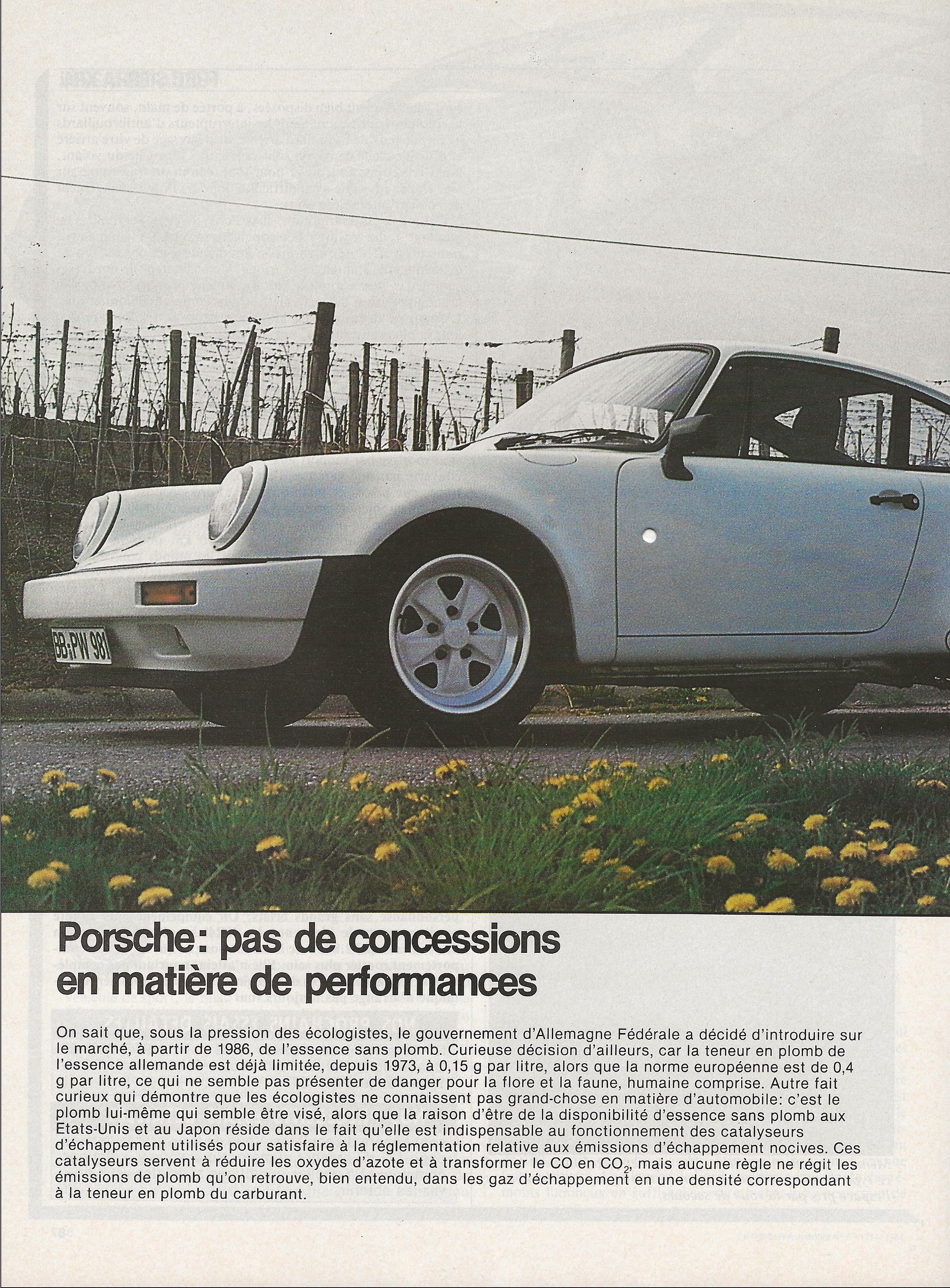 Le journaliste Michel Luzon a eu également la chance d’essayer l’un des vingt exemplaires produits par Porsche. Son essai a été publié dans le numéro 433 d’AUTOhebdo en août 1984. Sa conclusion rejoint l’avis de Paul Frère : « Malgré les conditions difficiles dans lesquelles s’est déroulé notre essai, il nous a permis de vérifier la réalité de l’expression « prendre son pied ». Les critiques que nous avons formulées concernant la dureté de certaines pédales ou le manque de précision de la boite ne reviennent en mémoire qu’après que l’on se soit extrait du baquet. Au volant domine une sensation de plénitude et de facilité provoquée tout d’abord par un moteur fabuleux puis par un étagement de boite idéal et enfin par un plaisir de conduire un « tout à l’arrière » permettant de contrôler et de prolonger les glissades du train arrière. Ce plaisir ne se fait-il pas de plus en plus rare de nos jours ? ».