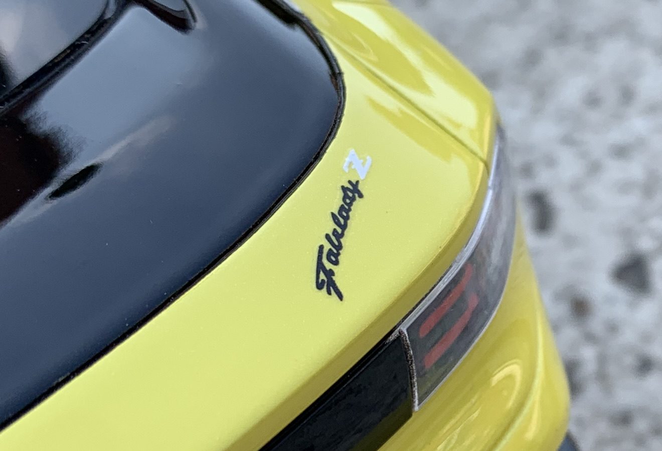 A la base du hayon, prend place un marquage Fairlady Z. Ce dernier reprend la police utilisée jadis sur les 240Z.