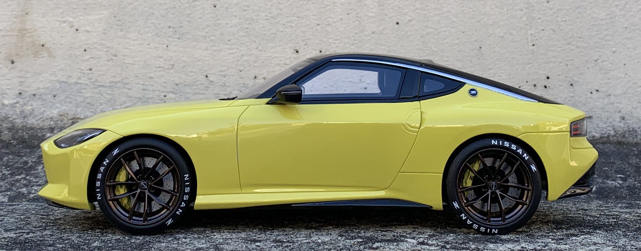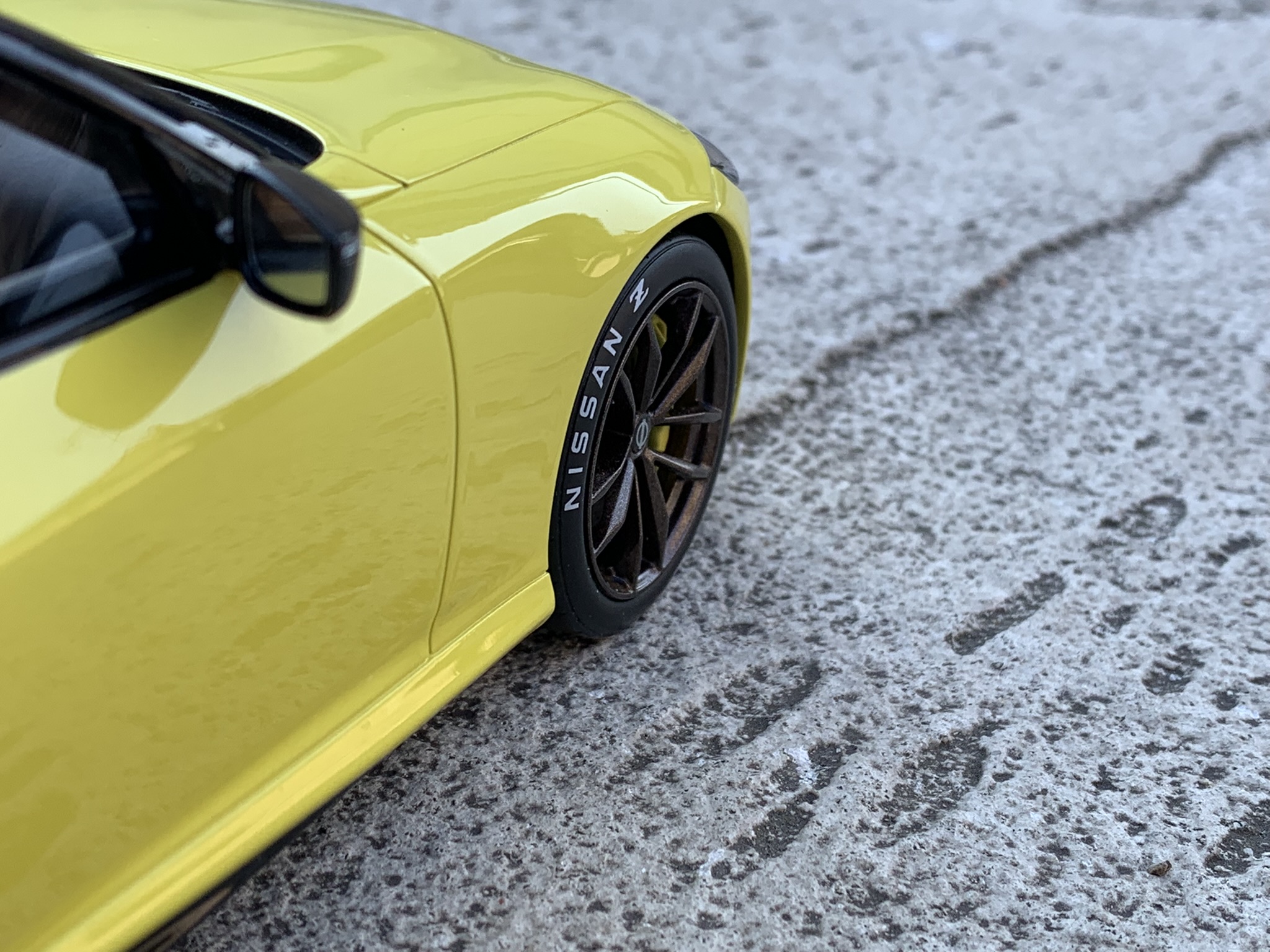 Les pneus sont également très réalistes. Ils arborent sur leurs flancs l’inscription Nissan Z proto. Seul manque à l’appel le marquage Dunlop qui figure sur le concept-car.