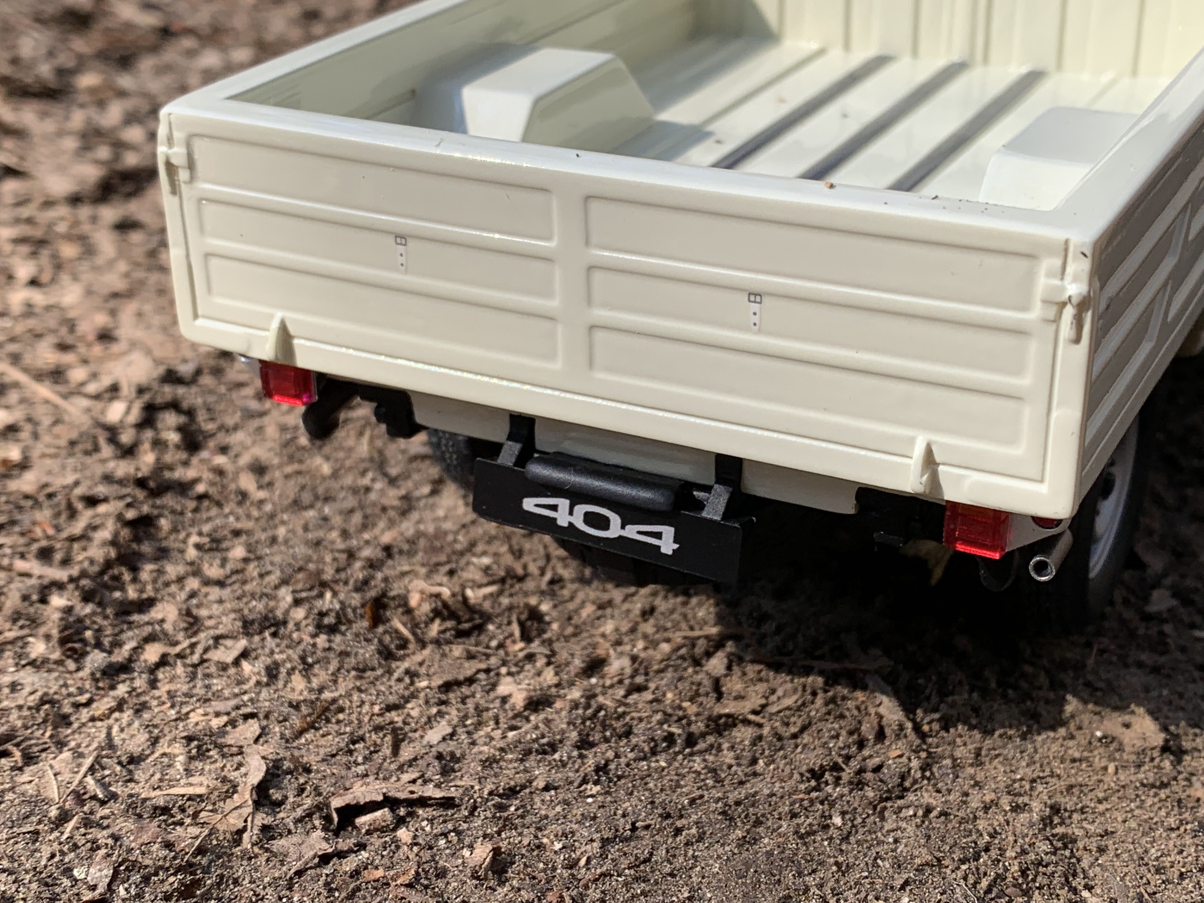Les optiques sont bien réalisées et nous retrouvons sur le dessus du capot le logo 404.