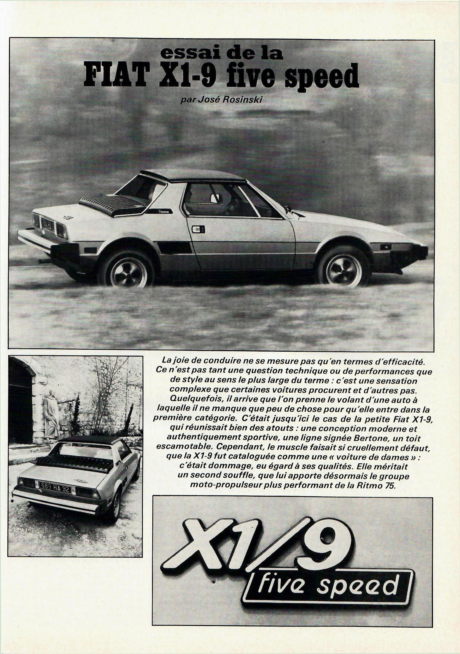 L’histoire de la Fiat X1/9 ainsi que des extraits des essais réalisés par la presse à l’époque de son lancement sont à lire dans la rubrique Il était une fois.