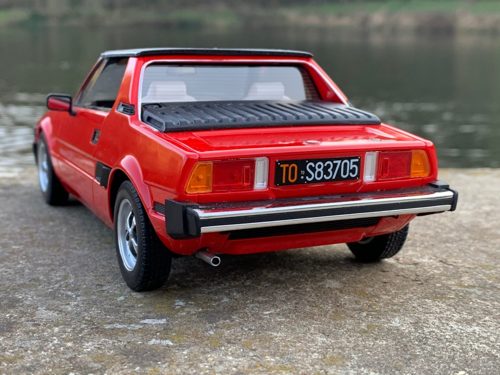 Dessinée par le studio Bertone, la Fiat X1/9 reprend les gènes des précédentes réalisations du maître italien. Il y a dans cette voiture un peu de Lancia Stratos, d’Alfa Romeo Carabo ou bien encore de Ferrari 308. La Fiat est dynamique et donne envie de prendre la route cheveux au vent ! Nous retrouvons ces bonnes impressions sur la miniature. La ligne est fidèle et Laudoracing a réalisé une très bonne copie.