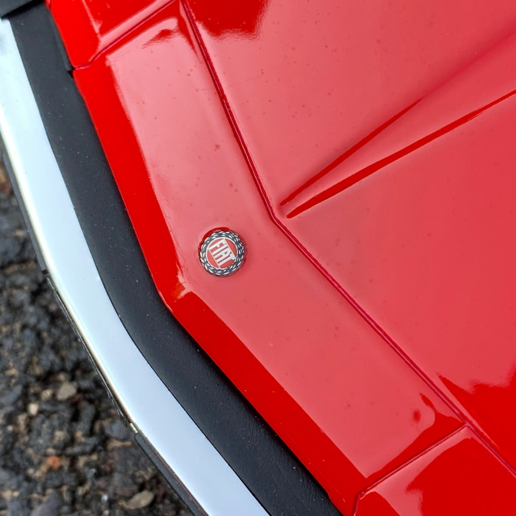 Le volant, identique à celui des premiers modèles, arbore maintenant des branches de couleur noires ainsi qu’un logo Fiat cerclé de lauriers. Ces détails importants sont présents sur la miniature et montrent, si besoin était, le soin apporté par Laudoracing.