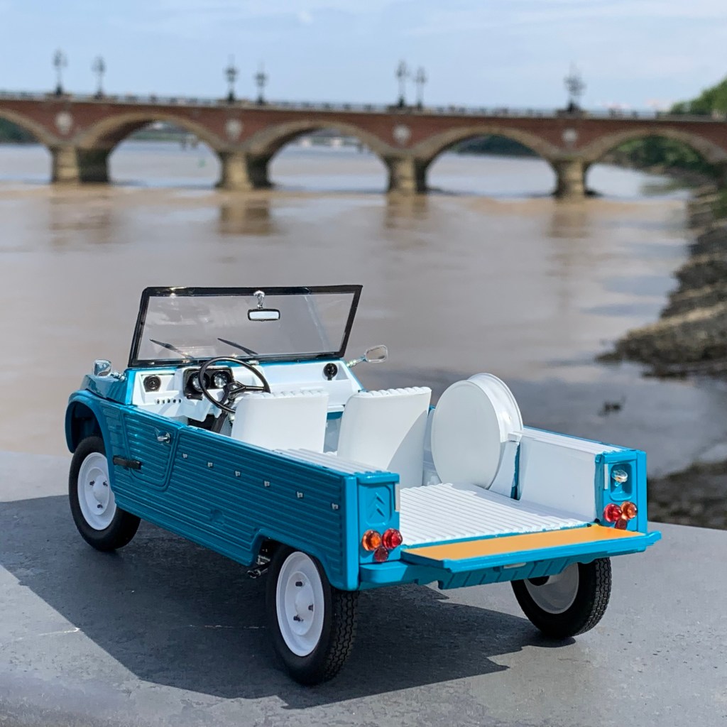 Norev vient de décliner sa Méhari au 1/18ème dans une très seyante couleur bleu océan. Immatriculée 33, cette dernière se devait de faire le voyage jusqu’à Bordeaux ! La voici dans la célèbre ville et sur les plages du Bassin d’Arcachon.