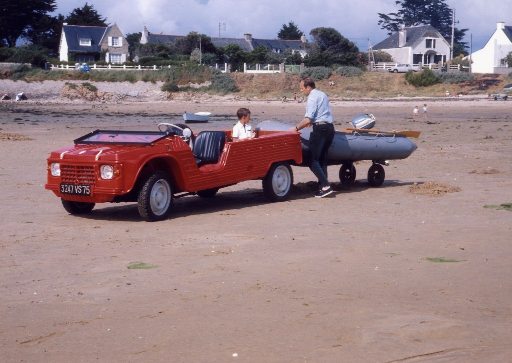 Présentée en 1968, la Méhari reprend la mécanique de la Dyane contemporaine. Avec sa carrosserie entièrement découvrable réalisée en plastique, elle se prête à bien des usages.