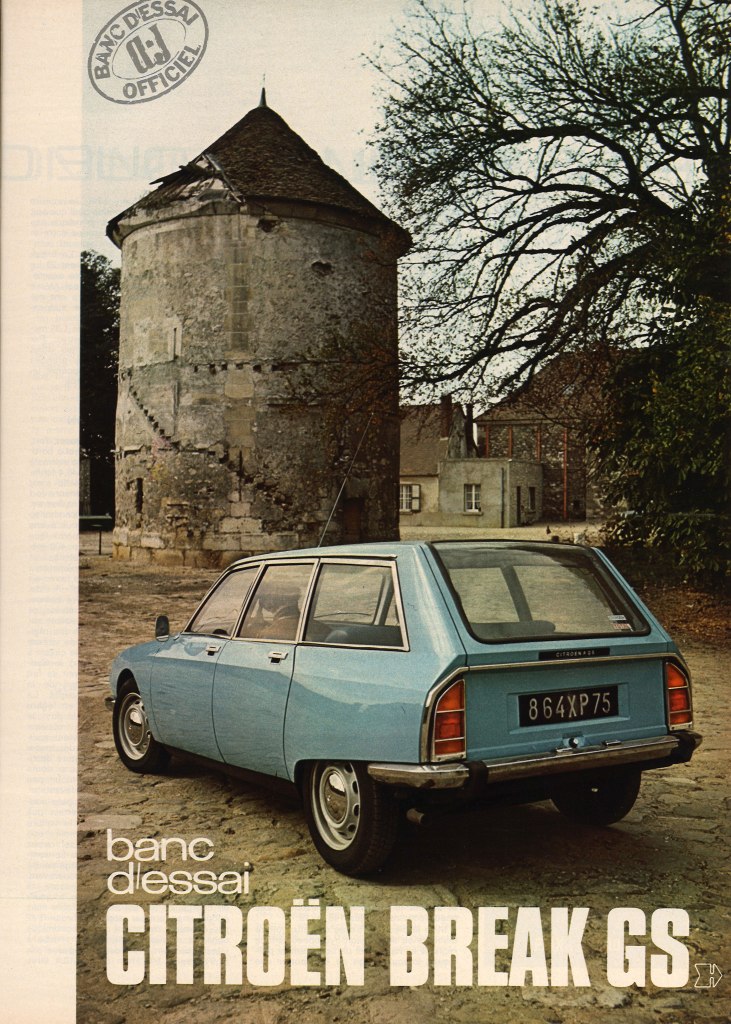 L’essai de la GS break est présenté dans le numéro 23 de l’Auto-Journal publié le 18 novembre 1971. Avant d’aborder la présentation et l’essai de cette GS, Bernard Carat, l’auteur de l’article, revient sur la fiabilité du modèle. Il se veut ailleurs optimiste : « la sortie d’une Citroën entièrement nouvelle est toujours un événement à part ; celle de la GS n’a pas failli à la tradition et cette voiture connut pendant les premiers temps de sa fabrication presque autant de déboires que la DS à ses débuts. Notre essai d’endurance sur 50000 km en fut le reflet mais, les modèles 72 sont, paraît-il, définitivement au point et sans problème ».