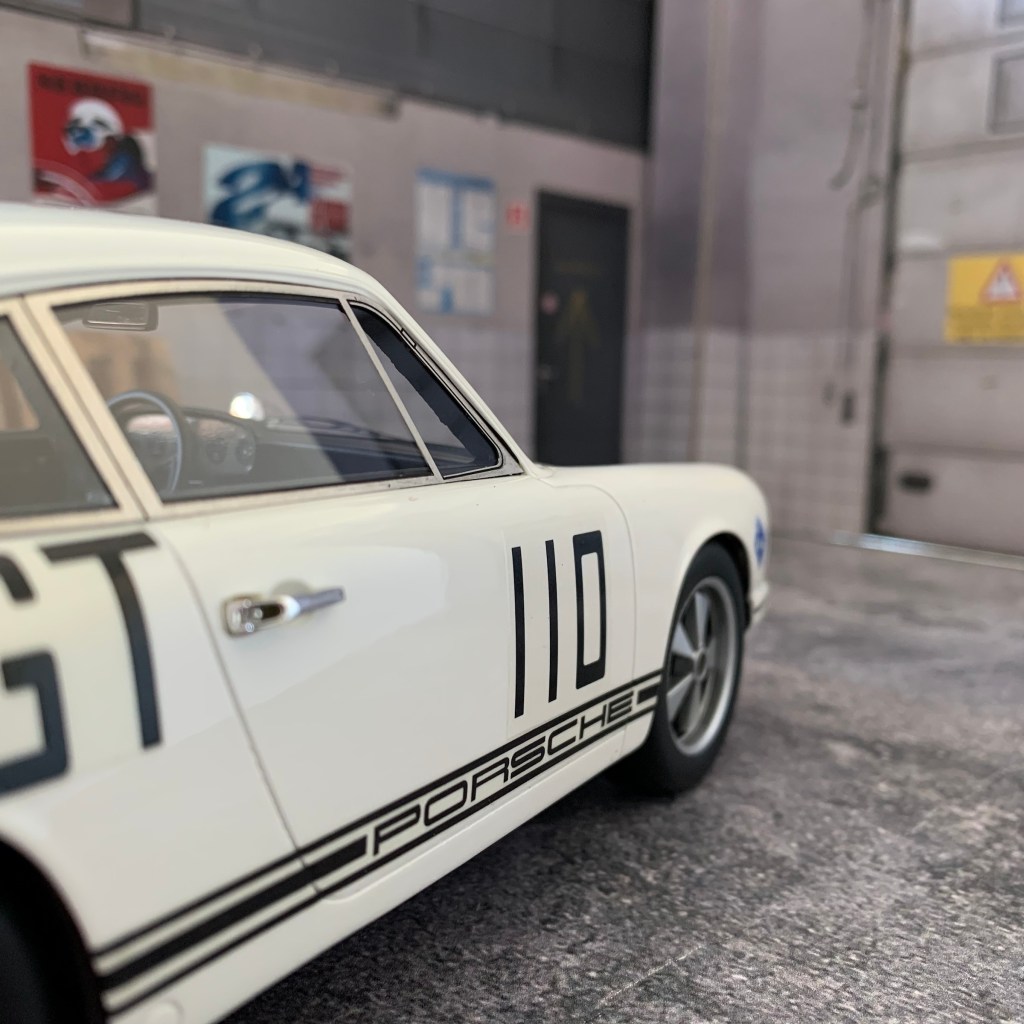 C’est l’une de ces voitures que le fabricant italien Tecnomodel a choisi de reproduire au 1/18ème. Il s’agit de la Porsche 911 ayant couru aux 1000 km du Nürburgring. Elle était aux mains de Malte Huth et Sepp Greger et portait le numéro 110.