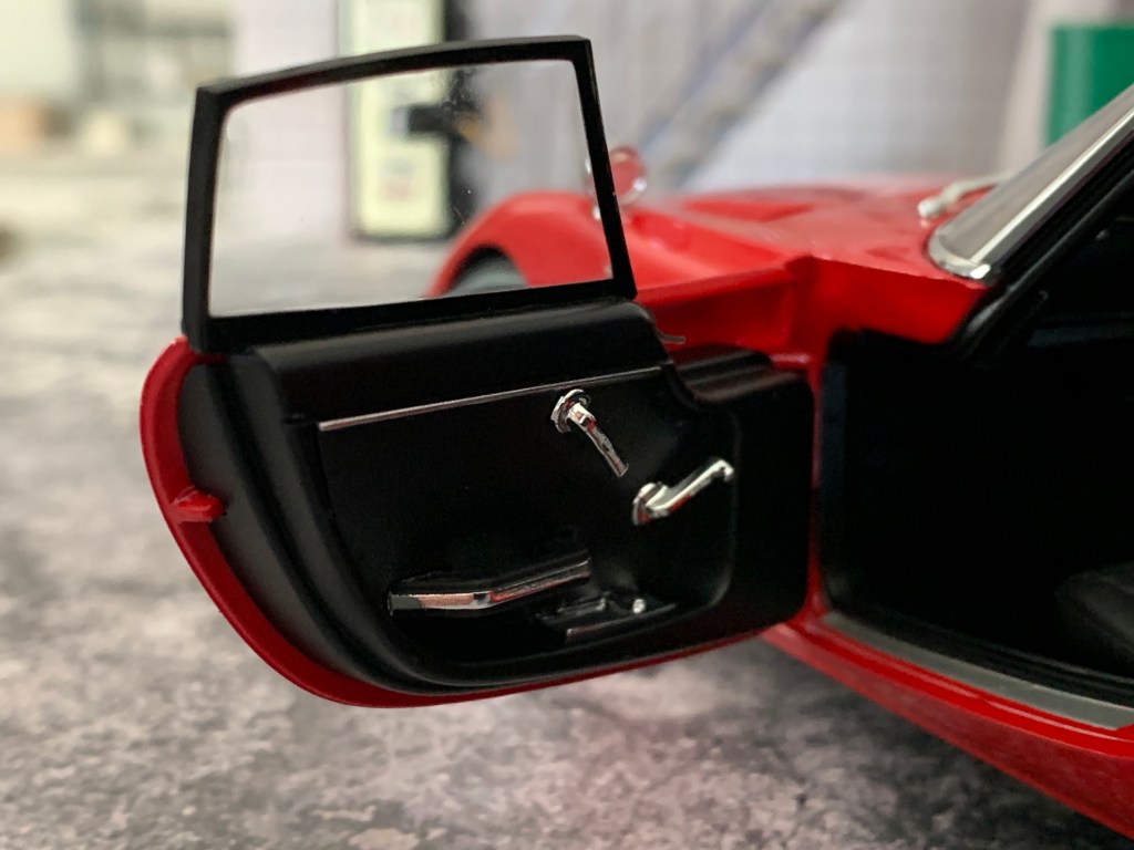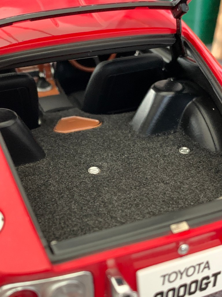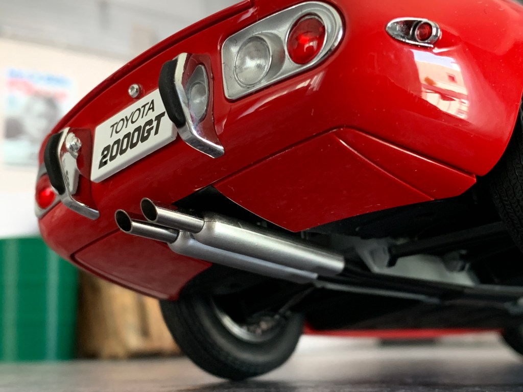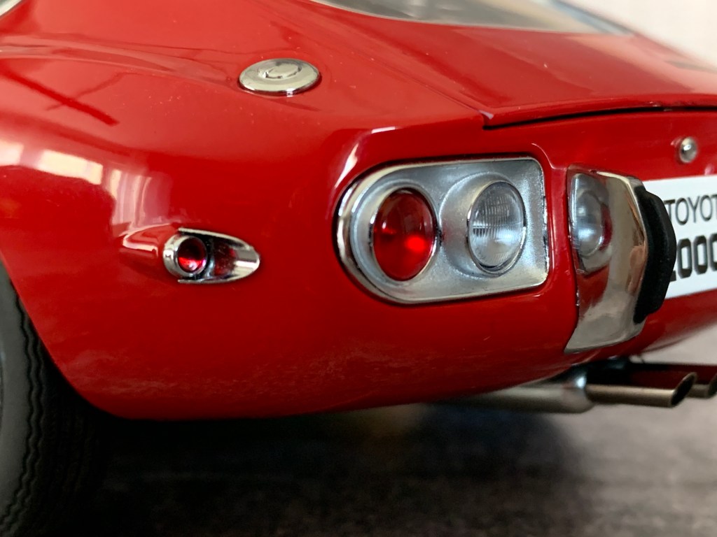 Tous les ouvrants figurant sur cette Toyota 2000 GT sont opérationnels, y compris les petits volets figurant sur les ailes avant. Là encore, la réalisation est superbe et très soignée.