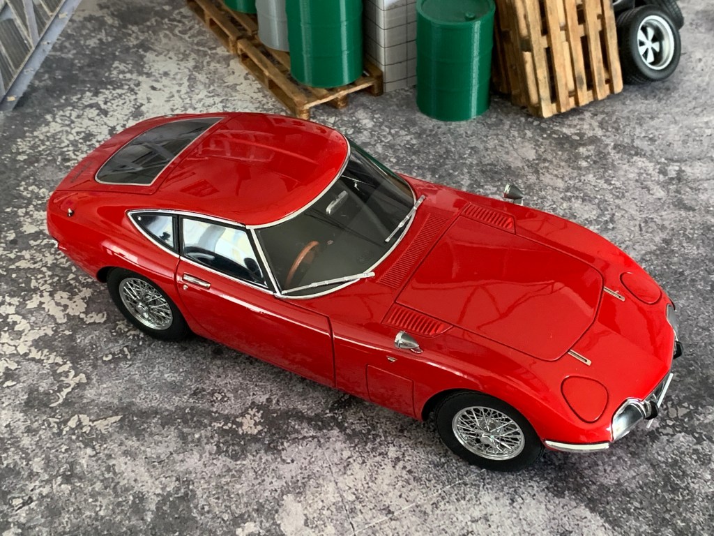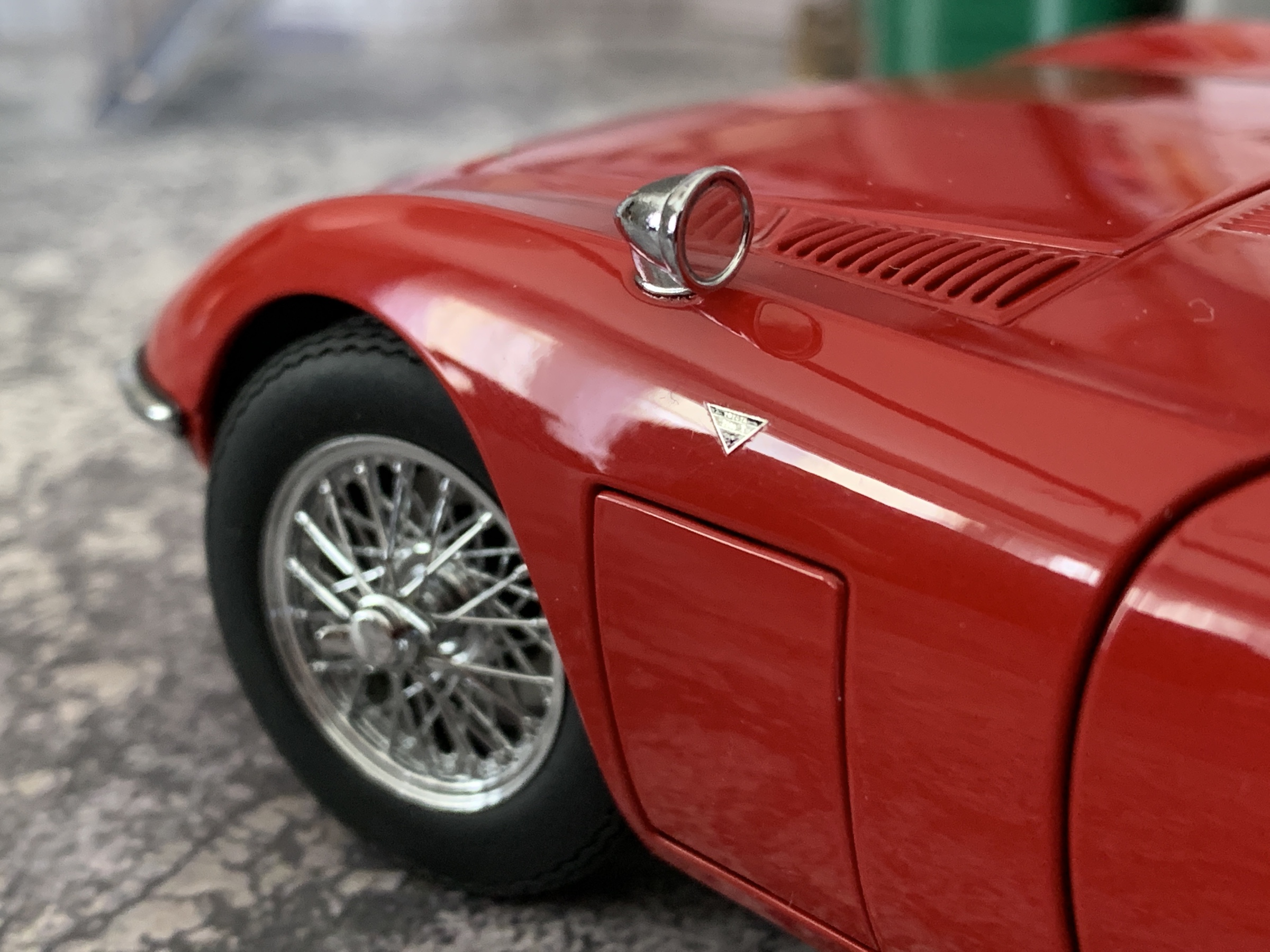 Elle a souvent été comparée à une Jaguar Type E et certains ont même dénoncé un énorme plagiat. Quand je la regarde, je ne peux m’empêcher de penser à la Jaguar mais je trouve que cette Toyota a aussi un je-ne-sais-quoi de Ferrari… J’ai peut-être été aveuglé par la 275 GTB/C de CMC présentée récemment sur lov4wheels et dans MINAUTOmag’ !