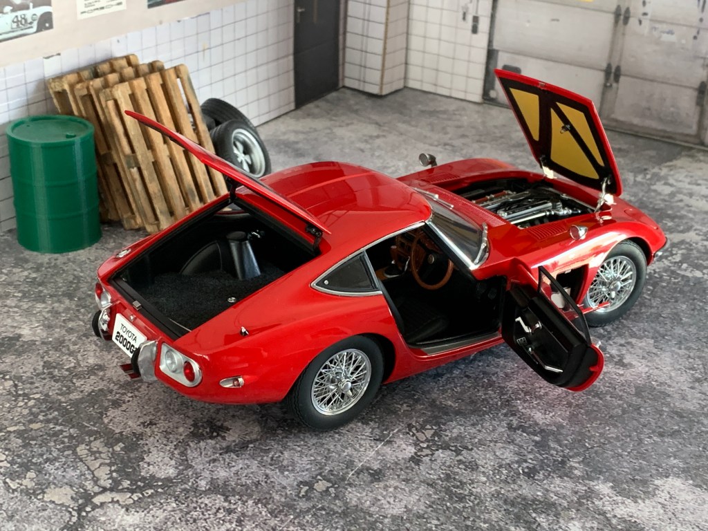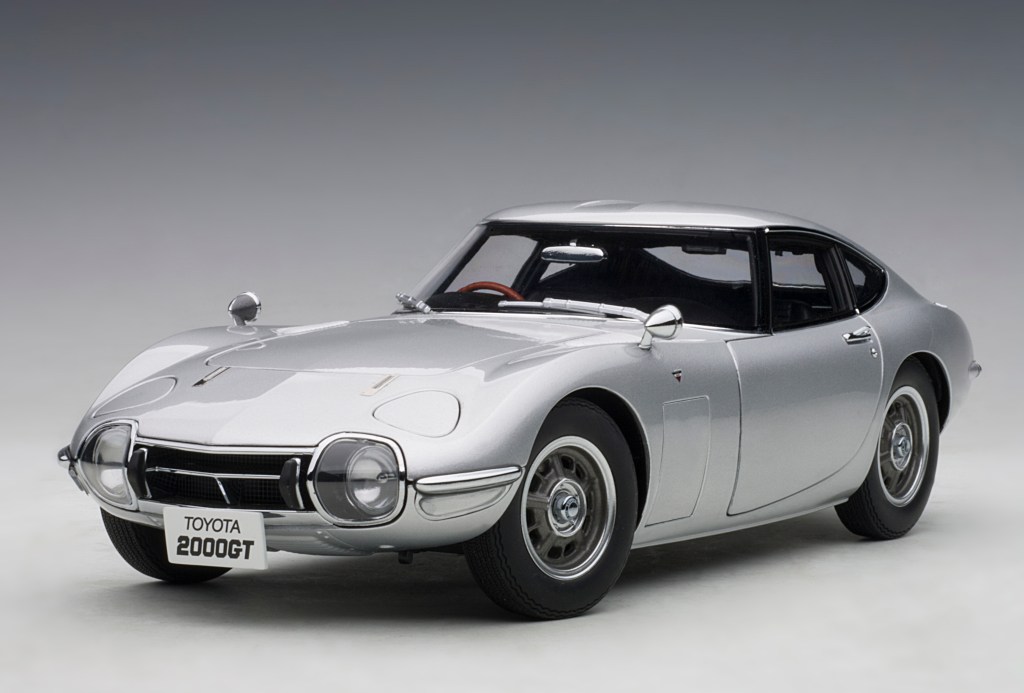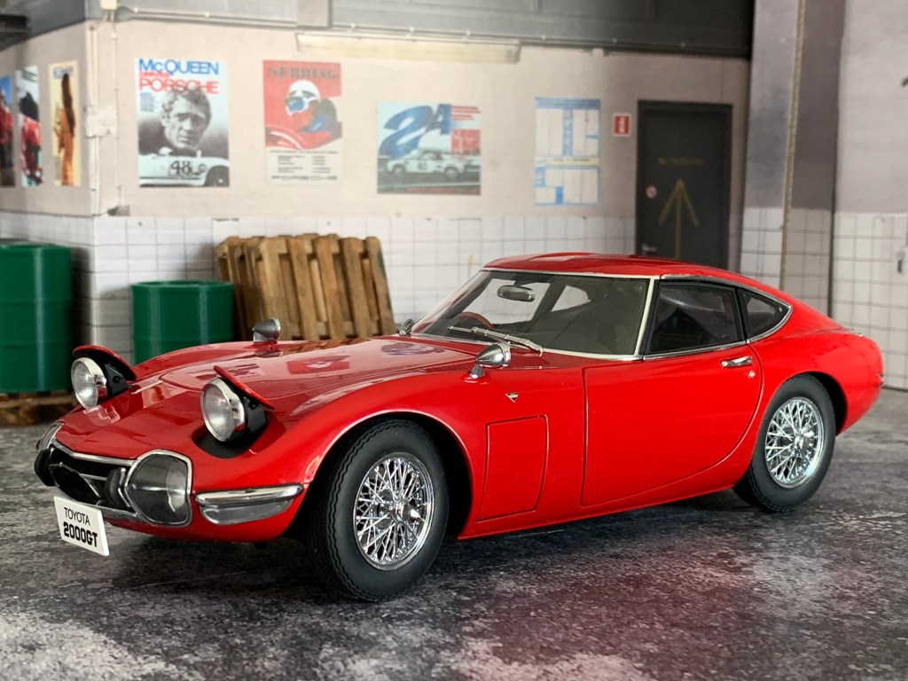 AUTOart propose à nouveau à son catalogue son exceptionnelle Toyota 2000 GT au 1/18ème. Le coupé nippon nous revient dans une superbe livrée rouge ou blanche équipée de jantes à rayons ainsi qu’en gris métal équipé de ses jantes alu traditionnelles.