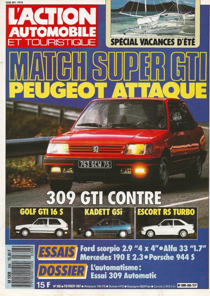 La 309 GTI est saluée par l’ensemble de la presse automobile, à l’instar de L’Action Automobile qui écrit dans le n°308 publié en février 1987 (article signé Yves-Bey Rozet, François Cardon et Philippe Gégout) : « La gétéïte continue de faire rage. Cette maladie sensuellement transmissible démange, c’est connu, mais réveille et revitalise, c’est reconnu. Peugeot, à qui elle réussi particulièrement, la cultive et vient de l’inoculer à la (jusqu’ici) morne 309. La grosse 205 en avait bien besoin. L’effet est saisissant. … Grâce à un moteur aussi présent que sympathique et une transmission parfaitement échelonnée, la 309 tient la dragée haute aux valeurs les mieux établies. … La 309 s’impose comme la plus plaisante à piloter. Entre autres, elle ne sous-vire pas. Son équilibre tend au contraire à la faire dériver de l’arrière à la limite. ».