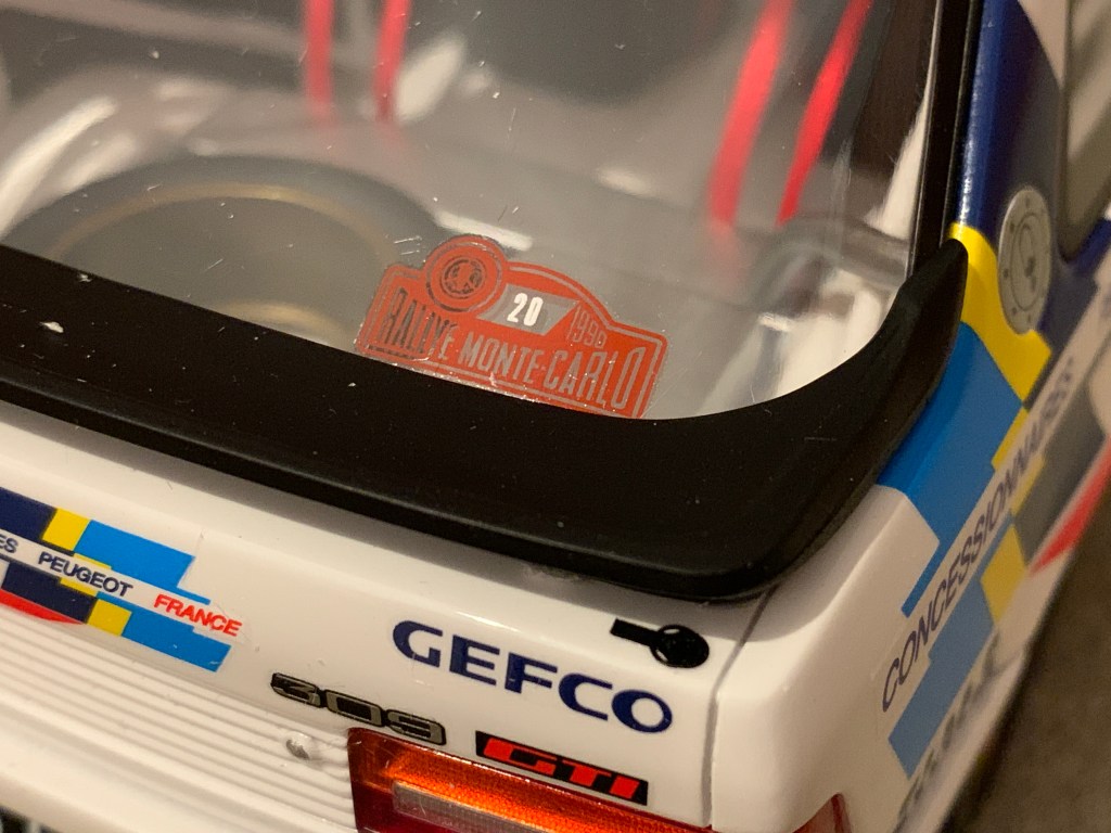 L’assemblage est soigné et la peinture bénéficie d’un bon rendu. OttOmobile est passé maître dans la réalisation des modèles de rallye et, il me faut, une fois de plus, saluer la superbe décoration de cette 309. Tous les sponsors figurant à l’époque sur la carrosserie semblent être présents et les décalcomanies sont posés avec soin.