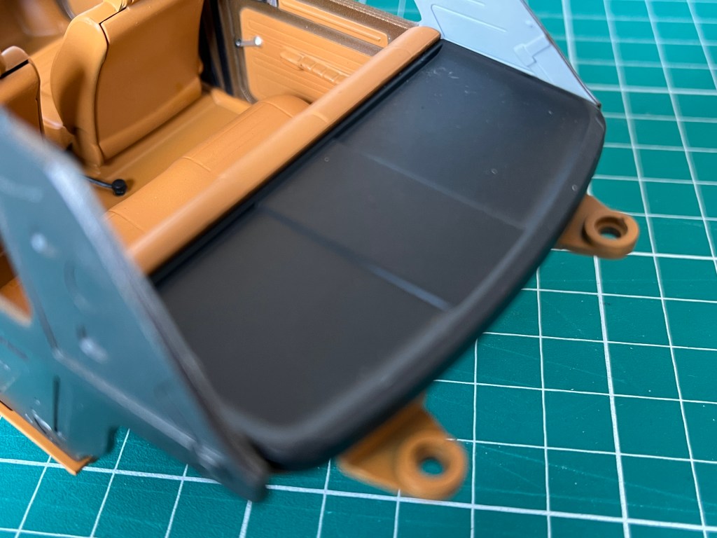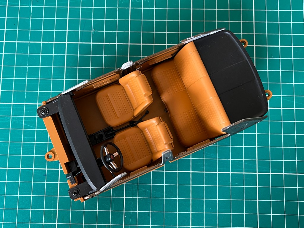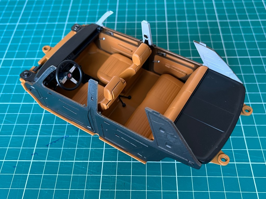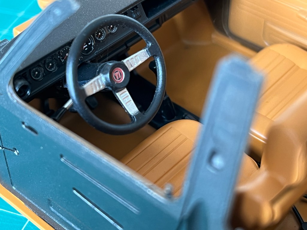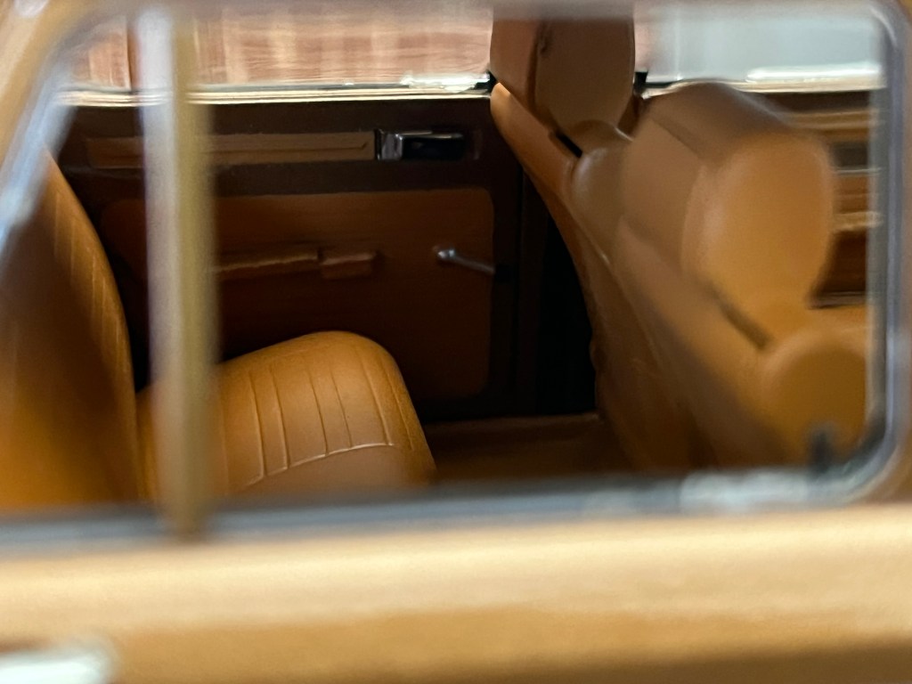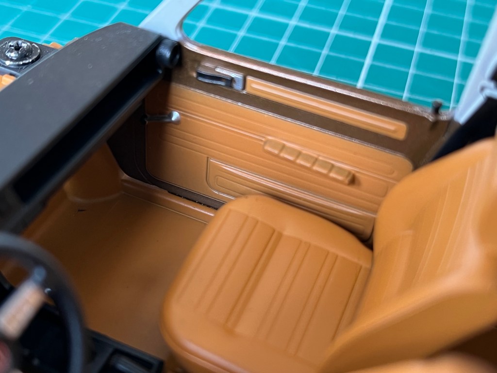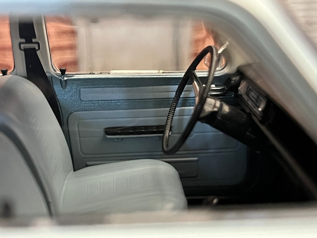 Les sièges sont également conformes à ceux utilisés en 1968, 1974 et 1975. Les contre-portes sont très détaillées et conformes également aux millésimes indiqués par Norev. Le fabriquant n’a pas oublié d’intégrer les petits loquets de verrouillage des portières !