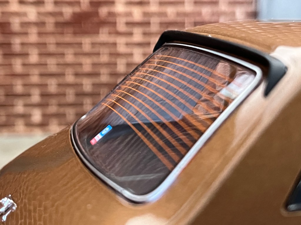 Les moulures latérales et les bordures des passages de roues chromées sont figurées par un filet de peinture couleur alu. C’est moins bien qu’une pièce en tampographie chromée mais il n’était pas possible de faire mieux compte tenu du prix de vente accessible de ces miniatures.