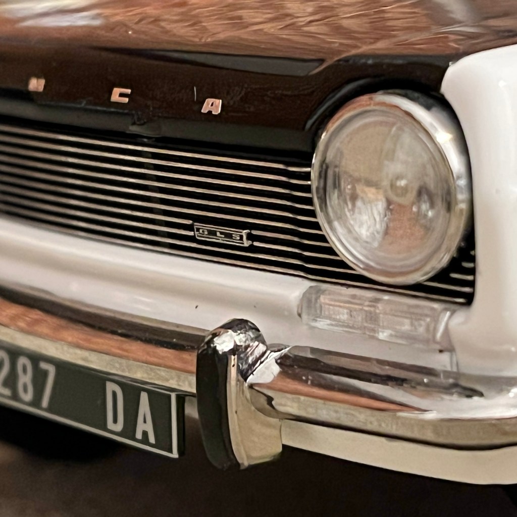 Nous retrouvons ce détail sur ces miniatures, le fabricant lyonnais ayant en effet conçu deux moules spécifiques pour sa 1100. Le premier correspond aux modèles d’avant 1971 et le second, avec sa grande lunette et son hayon à la pente plus douce, aux modèles post 1971.