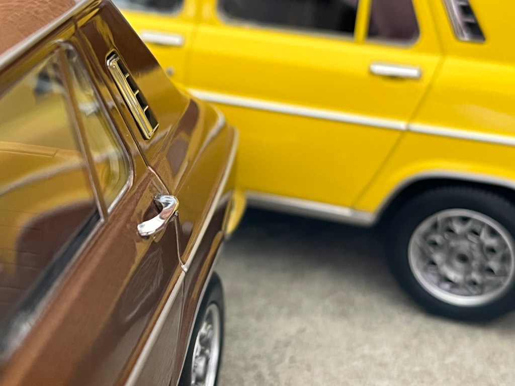 Enfin, comme sur les versions à l’échelle Un, les plages arrière sont différentes entre ces modèles. Les 1100 d’avant 1971, ici les GLS, sont équipées d’une plage arrière plate et les deux Ti disposent d’un modèle sur lequel figure en partie centrale une léger relief. Un détail pour beaucoup mais un détail d’importance qui montre à quel point Norev s’est attaché à reproduire une 1100 fidèle.