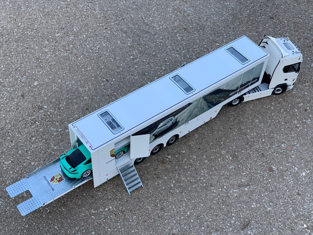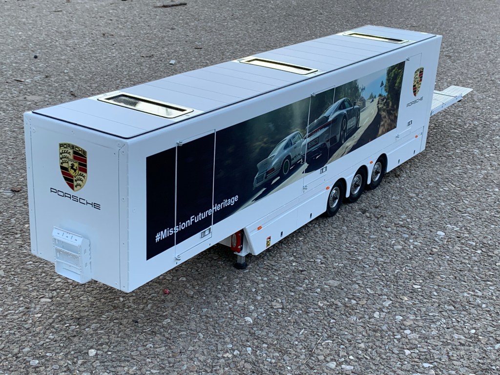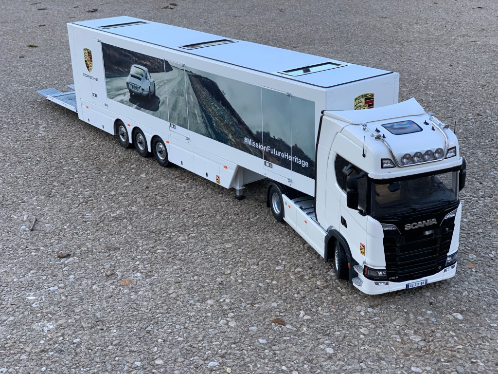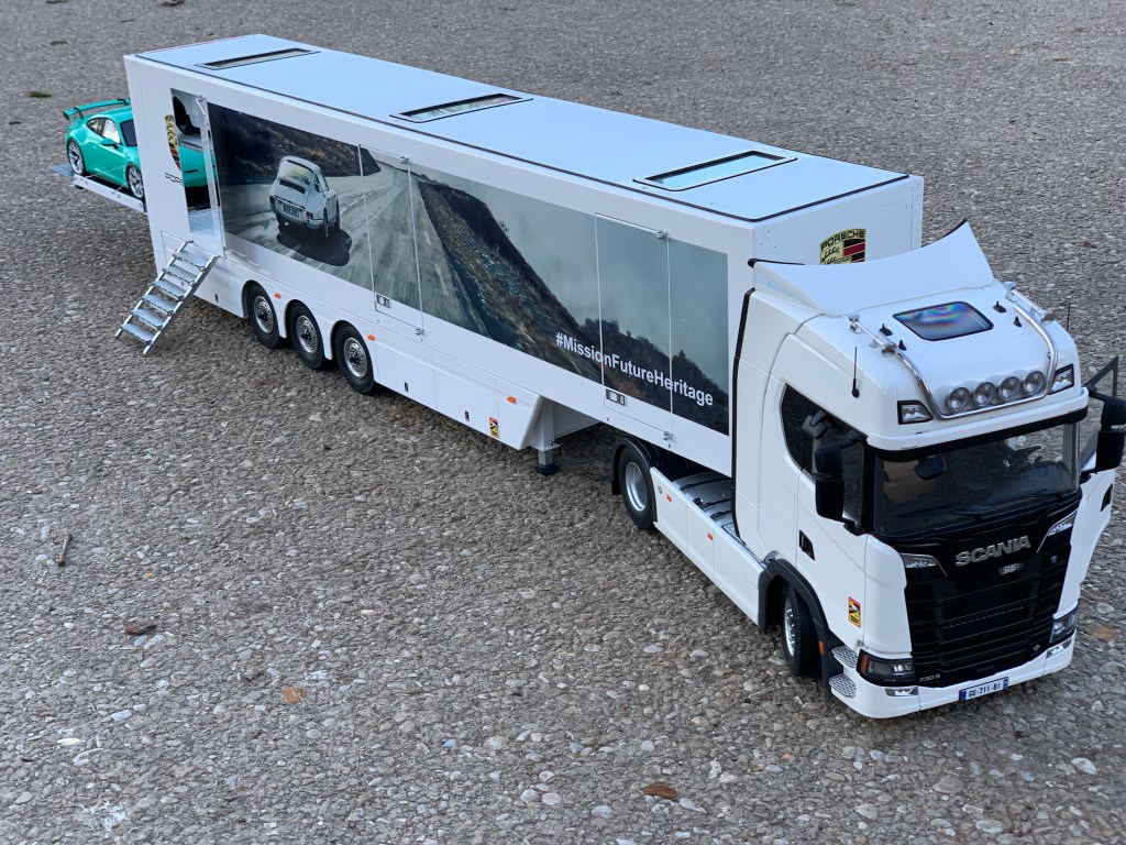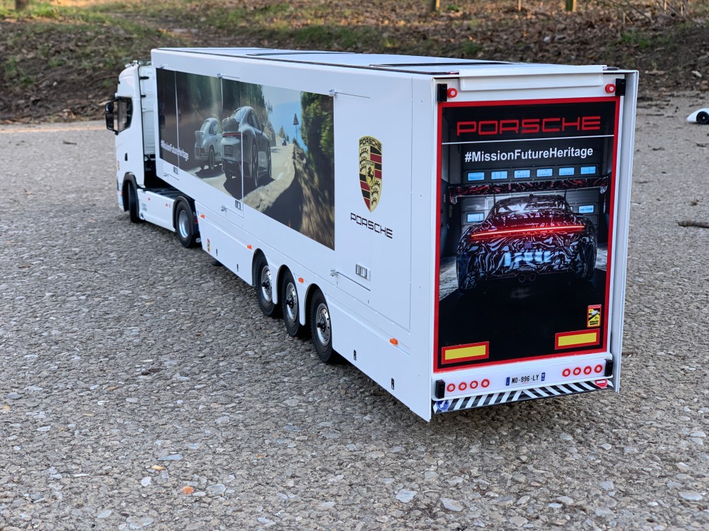 Ce n’est pas tous les jours que l’on fait réaliser une miniature sur-mesure… Voici l’histoire et la présentation d’un superbe semi-remorque aux couleurs de Porsche réalisé par MNtrailers.