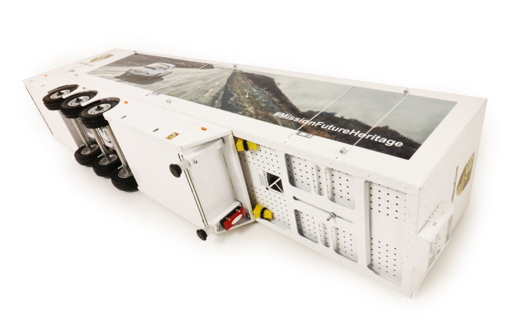 Les plus passionnés d’entre vous remarqueront la couleur rouge visible à l’arrière de la semi un fois la porte ouverte. Cette couleur est un hommage aux célèbres Mercedes O317 utilisés par Porsche pendant les années 70 et 80. Cette même couleur était également visible sur les Mercedes, au même emplacement et ce, quelle que soit la couleur extérieure du transporteur.