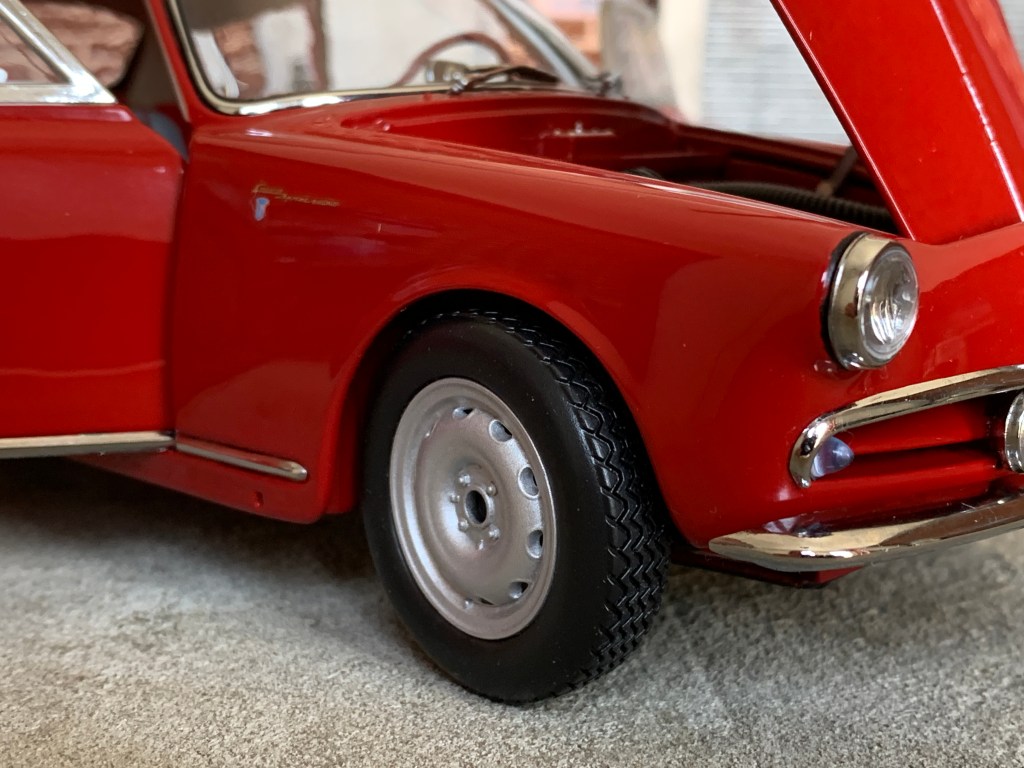 Si l’on fait abstraction des modèles produits par Miniminiera, la Giulietta Sprint au 1/18ème est une véritable nouveauté !