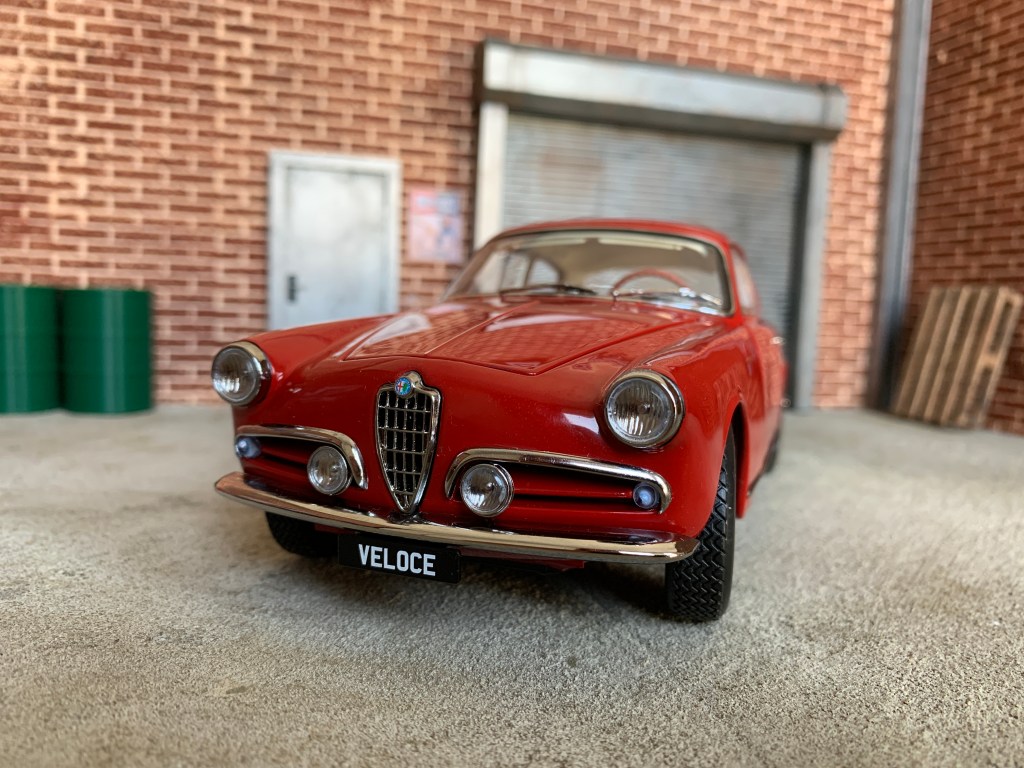 Pour le plus grand bonheur des Alfistes – et ils sont nombreux – Kyosho a décliné sa Giulietta en deux versions, la Sprint et la Sprint Veloce, ainsi qu’en de nombreux coloris. Pour cette présentation, j’ai choisi la version Sprint Veloce de couleur rouge.