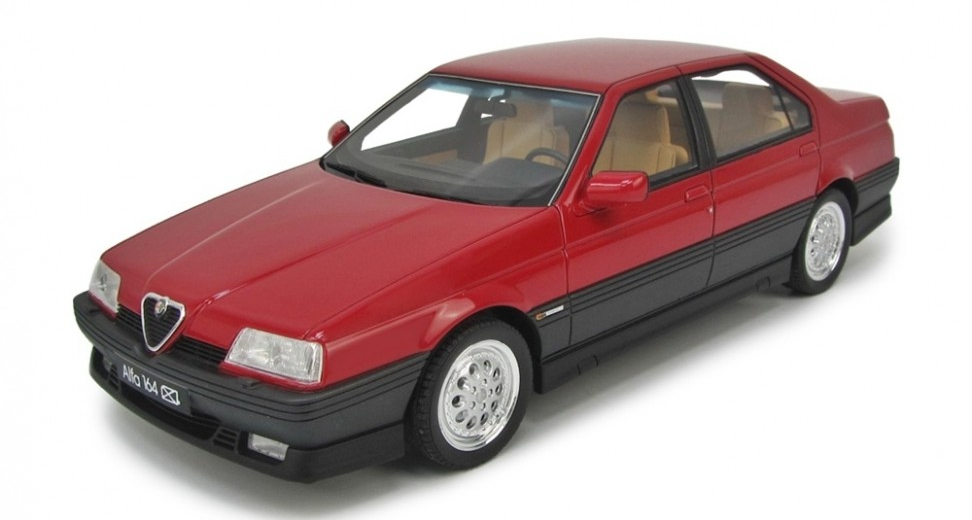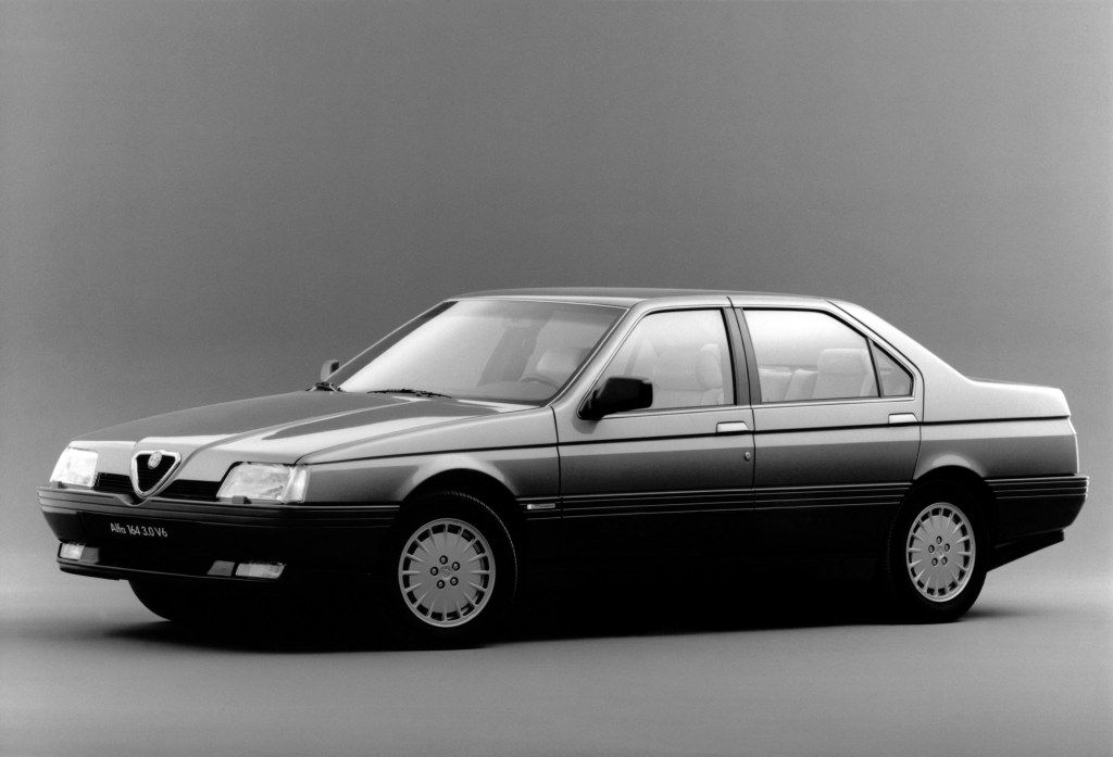 L’Alfa Romeo 164 est quant à elle présentée en 1987. Dessinée par Pininfarina, elle a pu bénéficier d’un budget de développement plus important et elle ne partage aucune pièce de carrosserie avec ses trois sœurs.