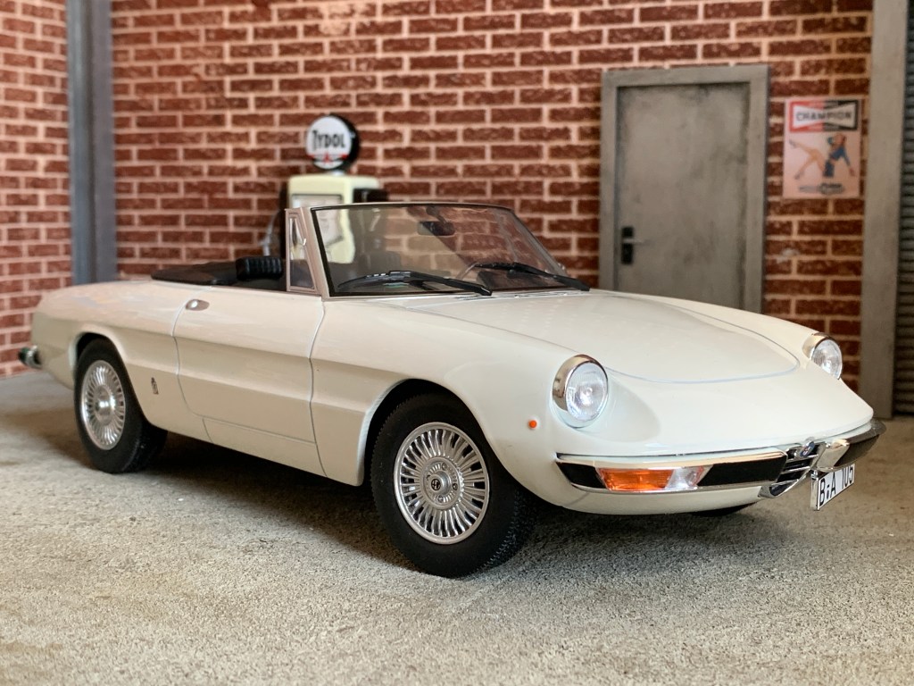 Il faut noter par ailleurs que Norev a récemment commercialisé la berline Giulia au 1/18ème et que le Spider qui, à l’échelle Un, partage de nombreuses pièces avec la Giulia, vient de faire son apparition dans le catalogue du constructeur !