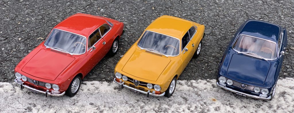 A l’image de ce qui a été réalisé récemment pour la Citroën BX, pour la Mercedes 190 ou pour la Porsche 914, Norev a développé plusieurs versions de sa Giulia Sprint GT.